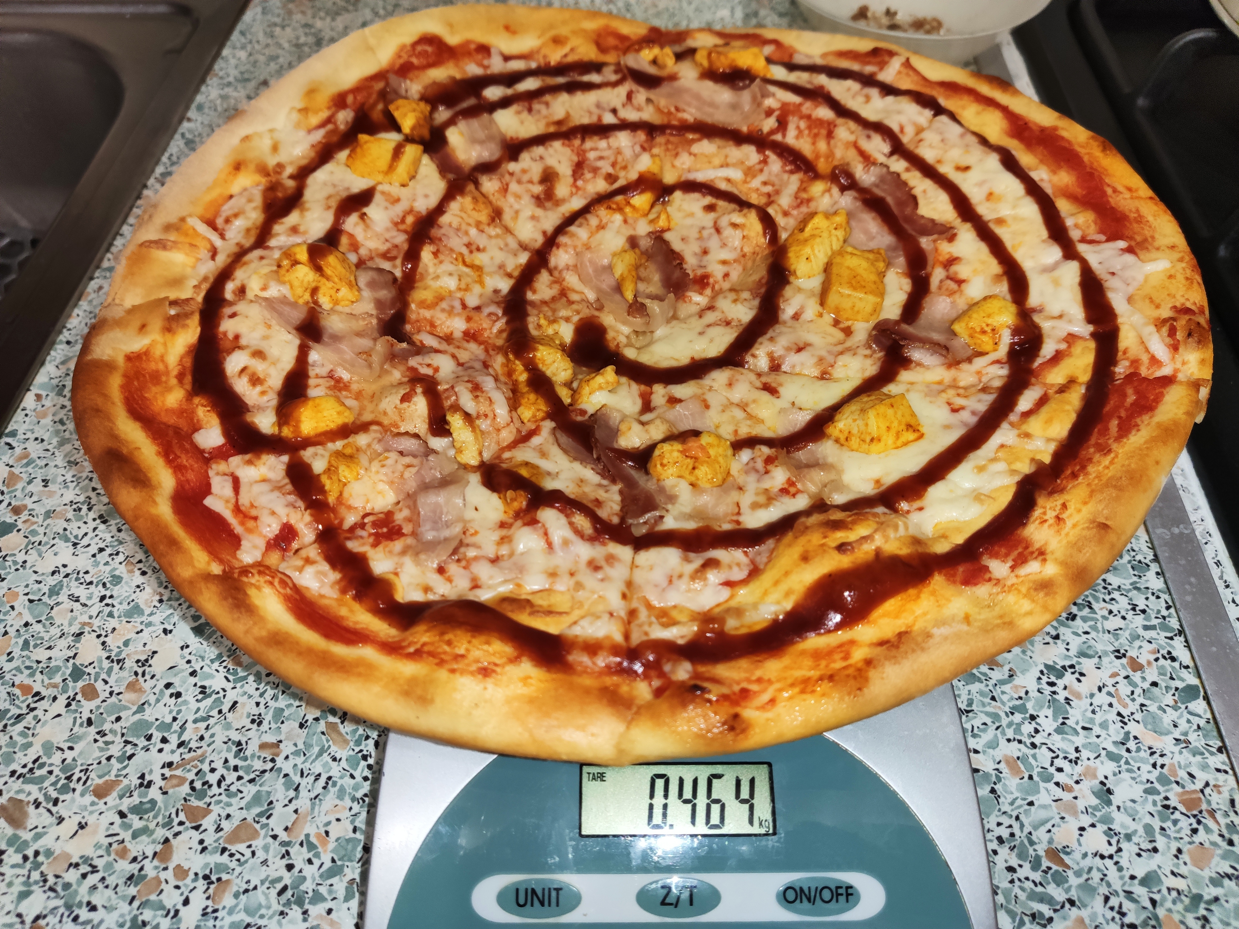 - Перфекто (Состав: томатный соус, моцарелла,ветчина, куриное филе, перец свежий, соус чили сладкий)