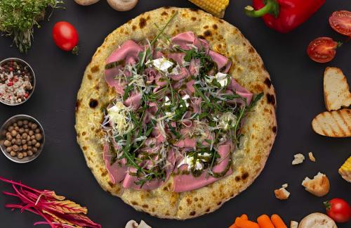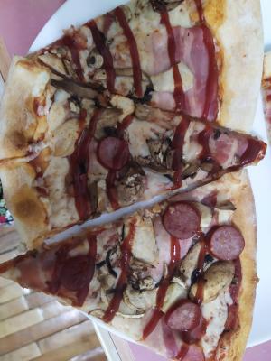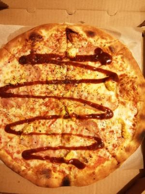 - Барбекю (Состав: томатный соус, моцарелла, свинина, бекон, маринованный лук, соус барбекю)