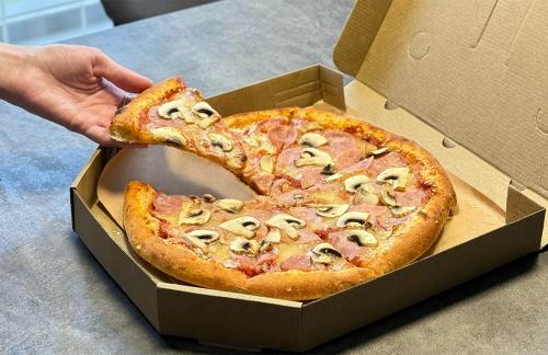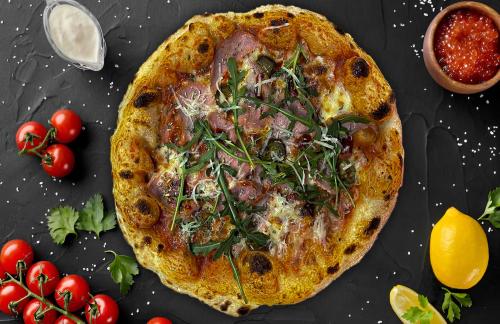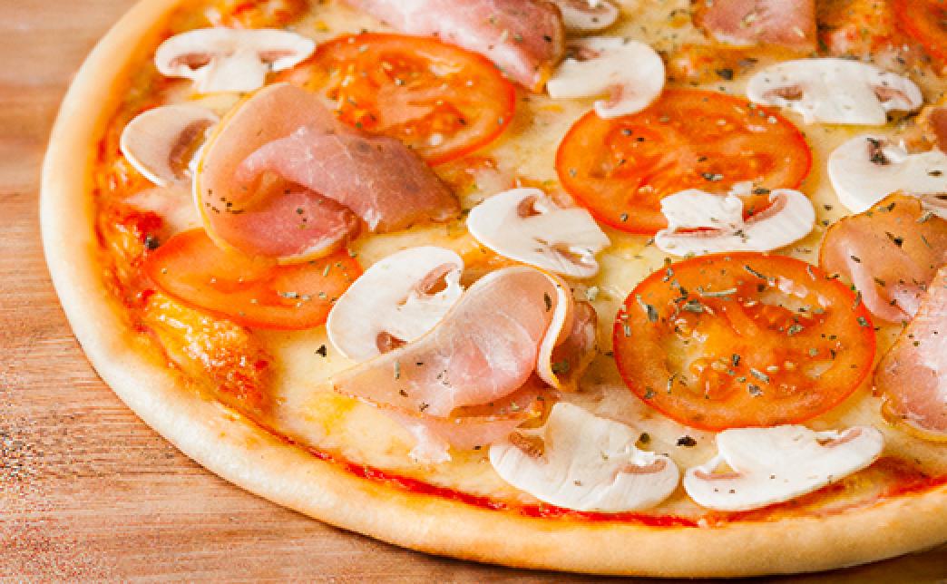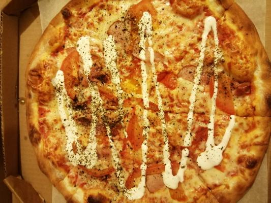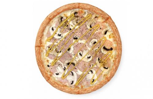 - Сочная (Состав: томатный соус, моцарелла, ветчина, томат, соус сметанный)