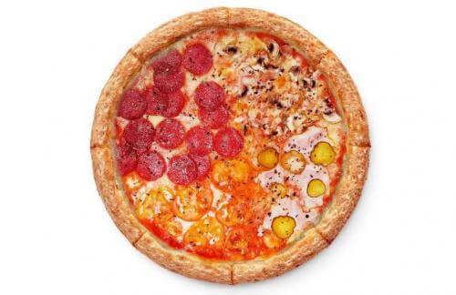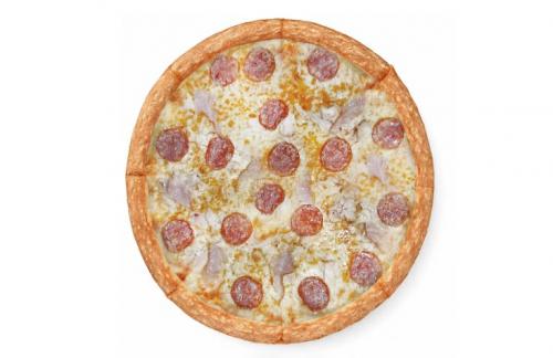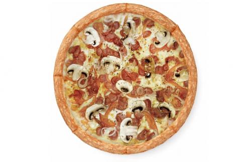 - Час-пик (Состав: томатный соус, моцарелла, салями, бекон, томат, соус майонезно-чесночный)