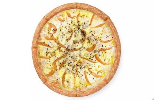 Состав: томатный соус, моцарелла, брокколи, лосось, яйцо куриное, сливки.