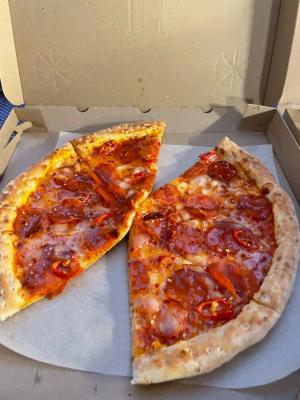 - Стоимость пицц идентична при заказе в зале и на доставку.