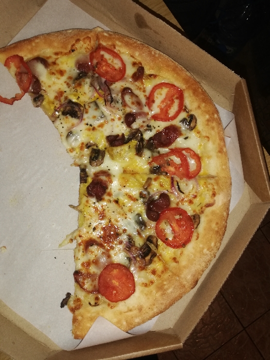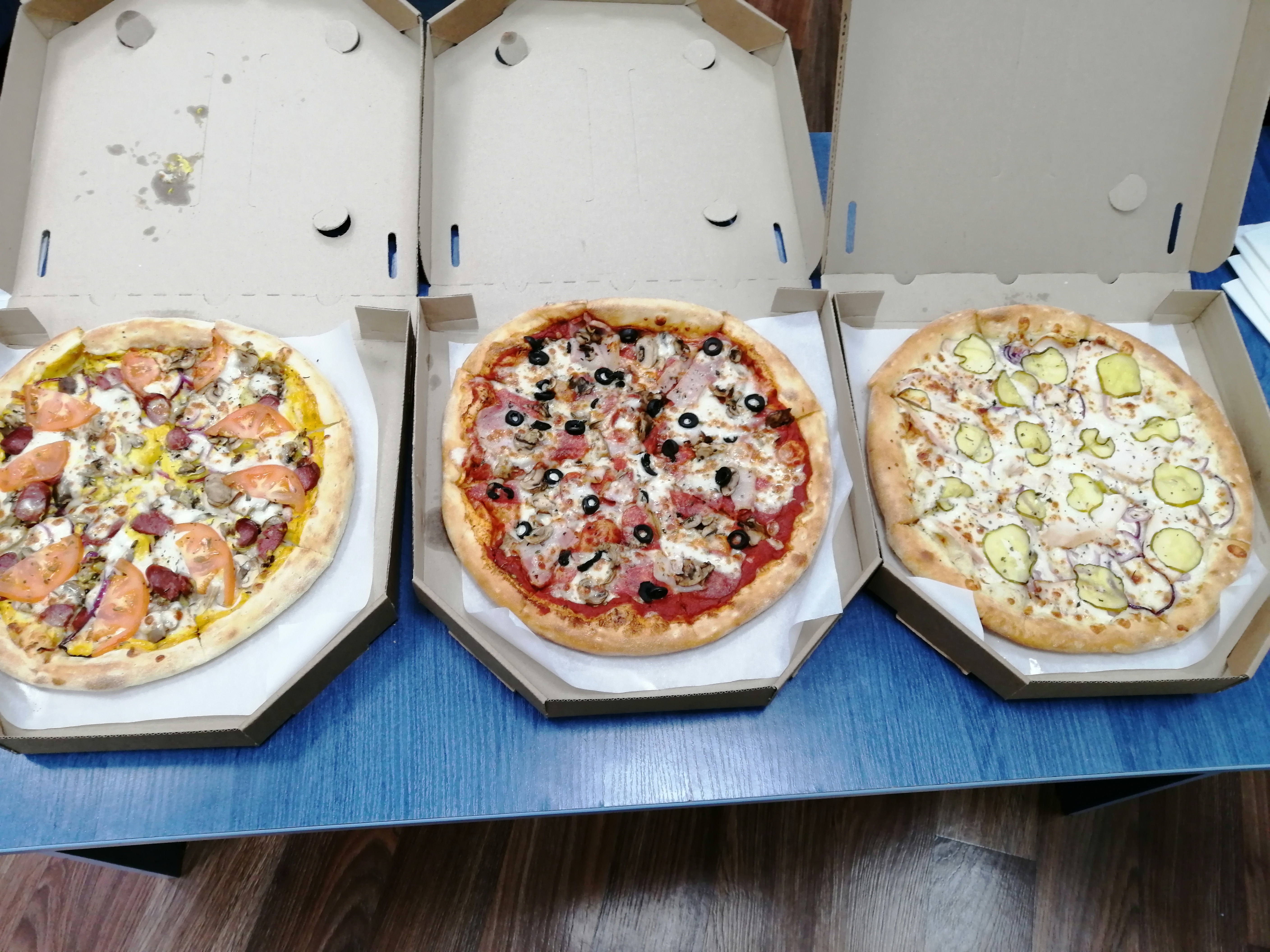 - Стоимость пицц идентична при заказе в зале и на доставку.