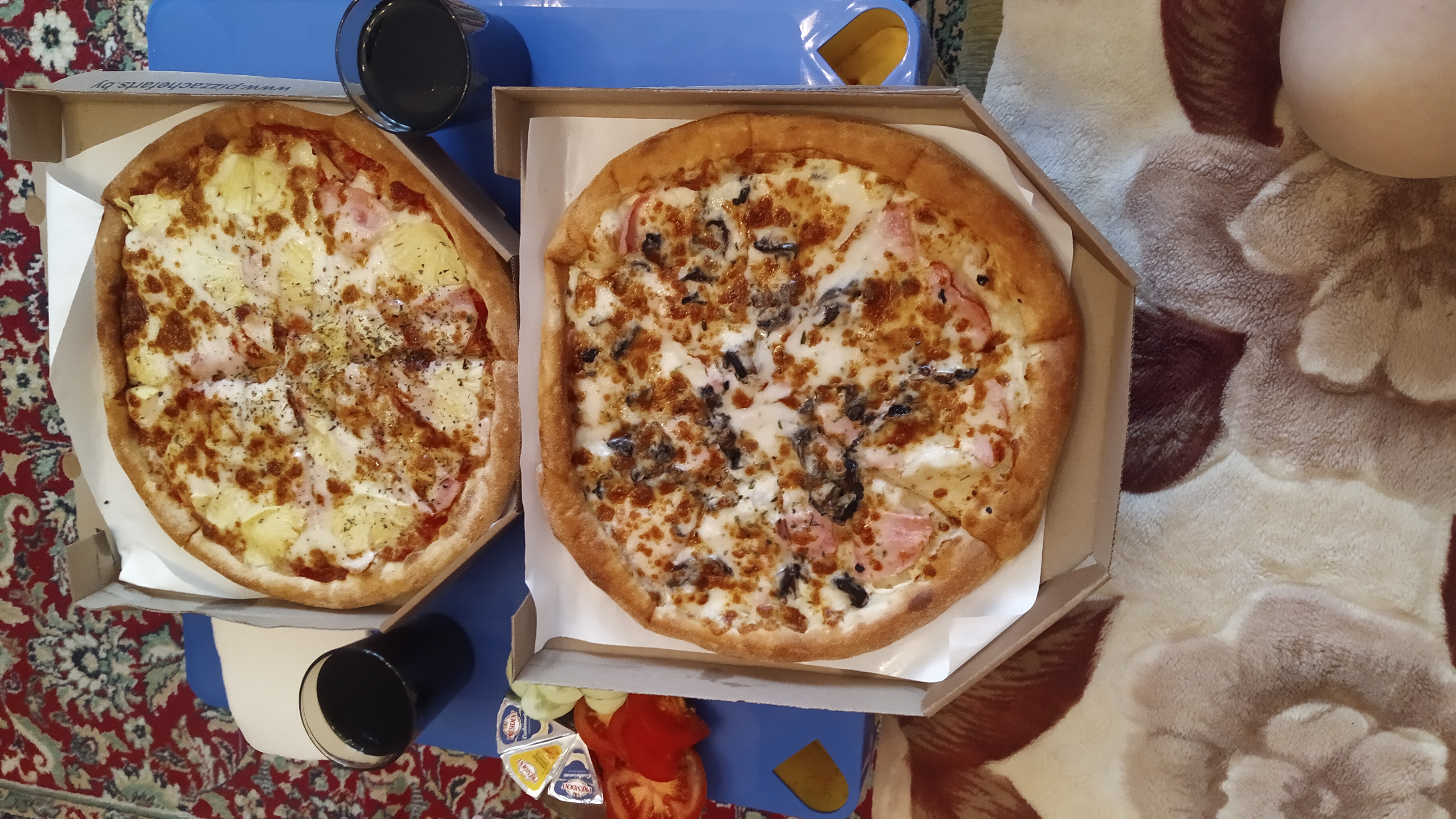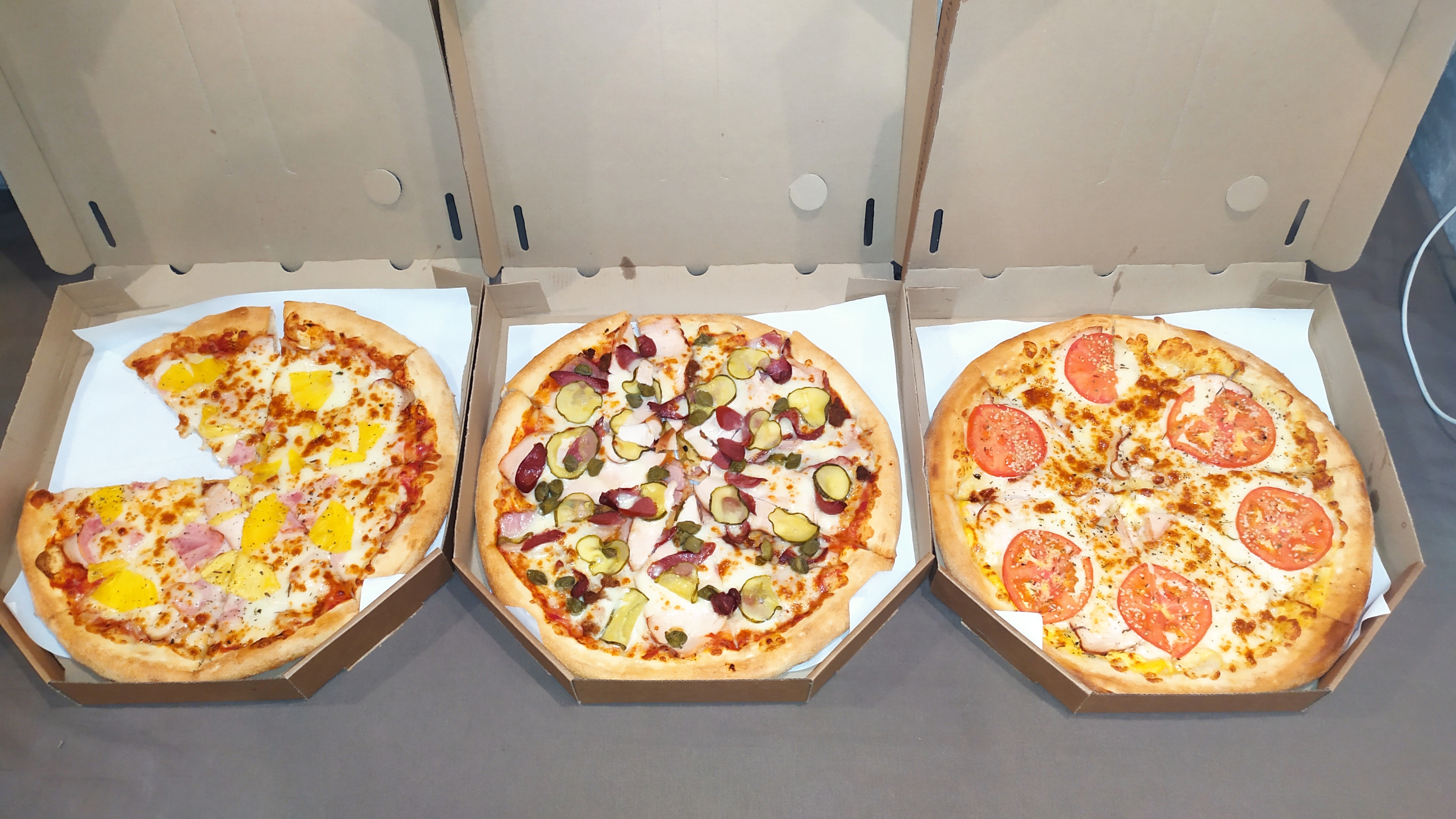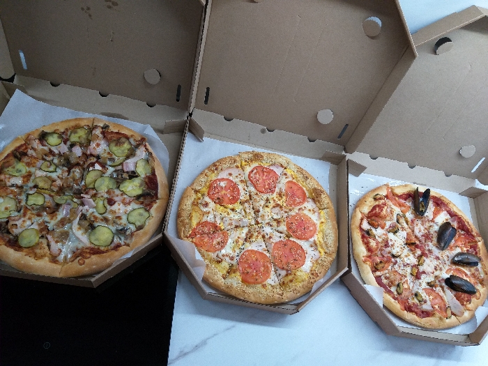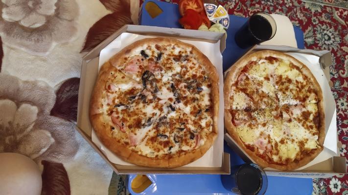 - Стоимость пицц идентична при заказе в зале и на доставку.