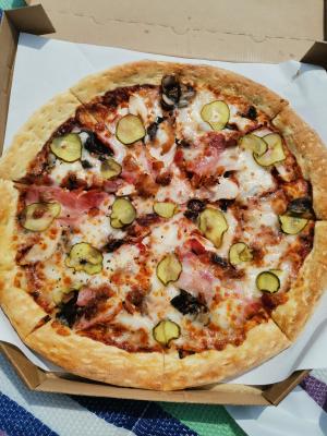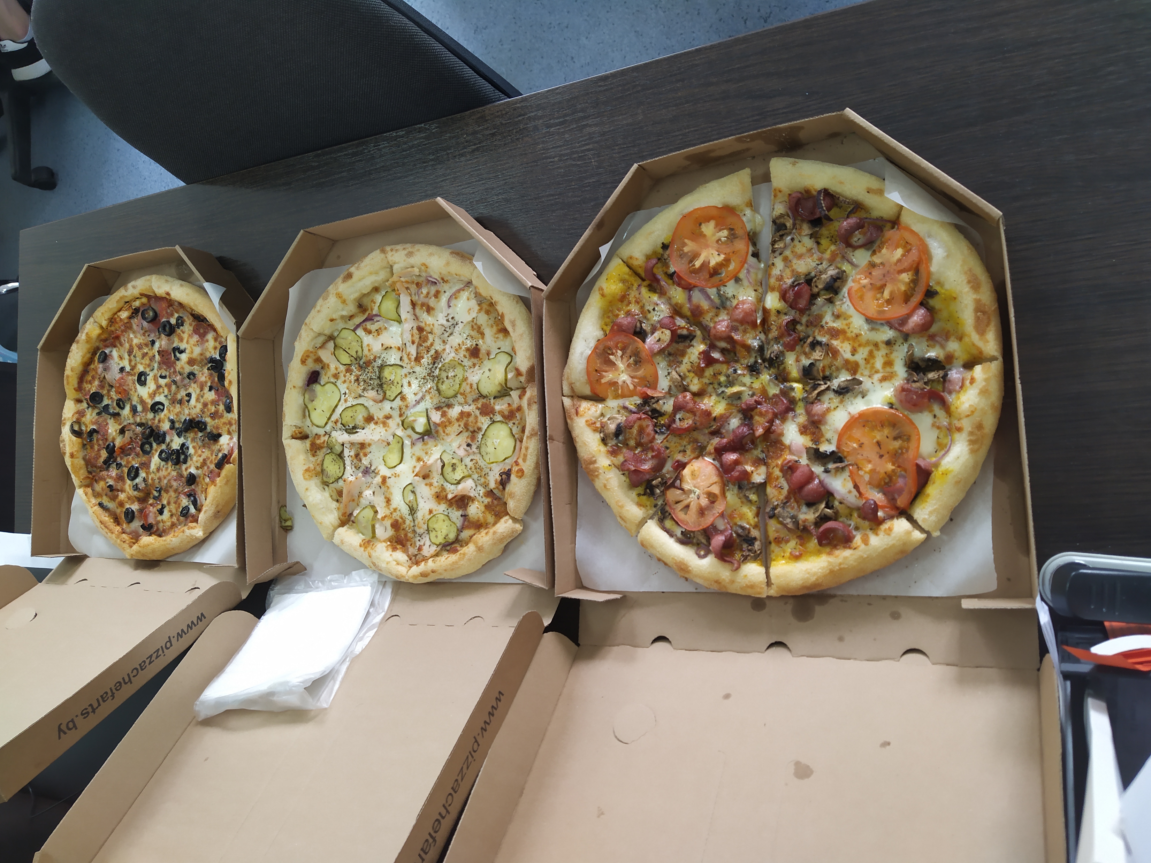 - Стоимость пицц идентична при заказе в зале и на доставку.