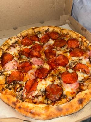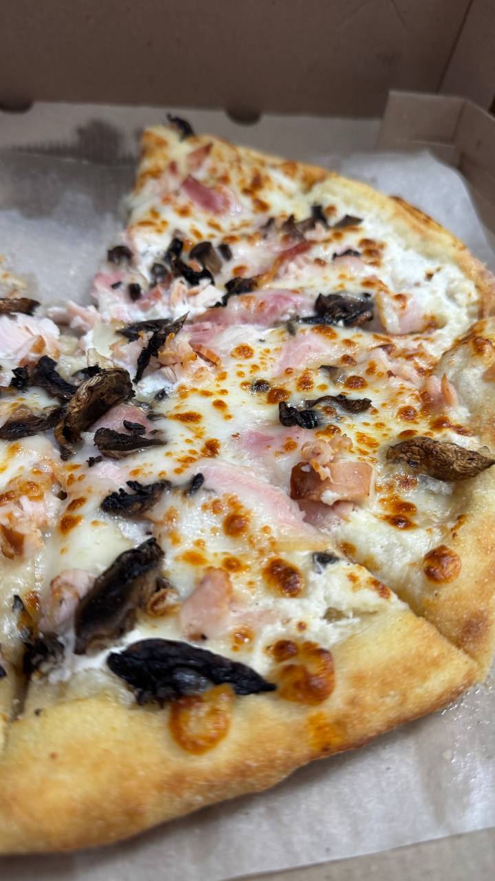 - Стоимость пицц идентична при заказе в зале и на доставку.