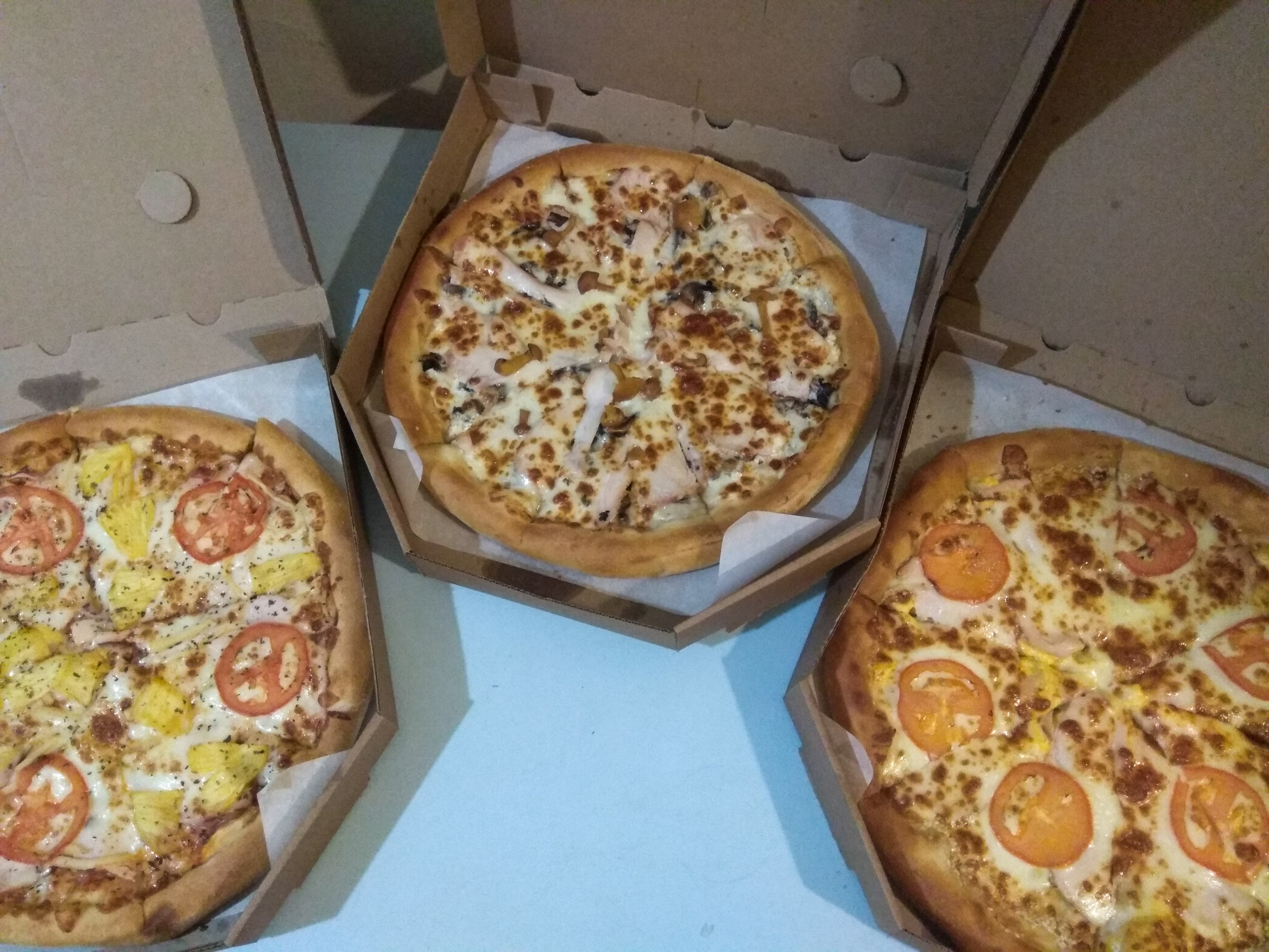 - Стоимость пицц идентична при заказе в зале и на доставку.