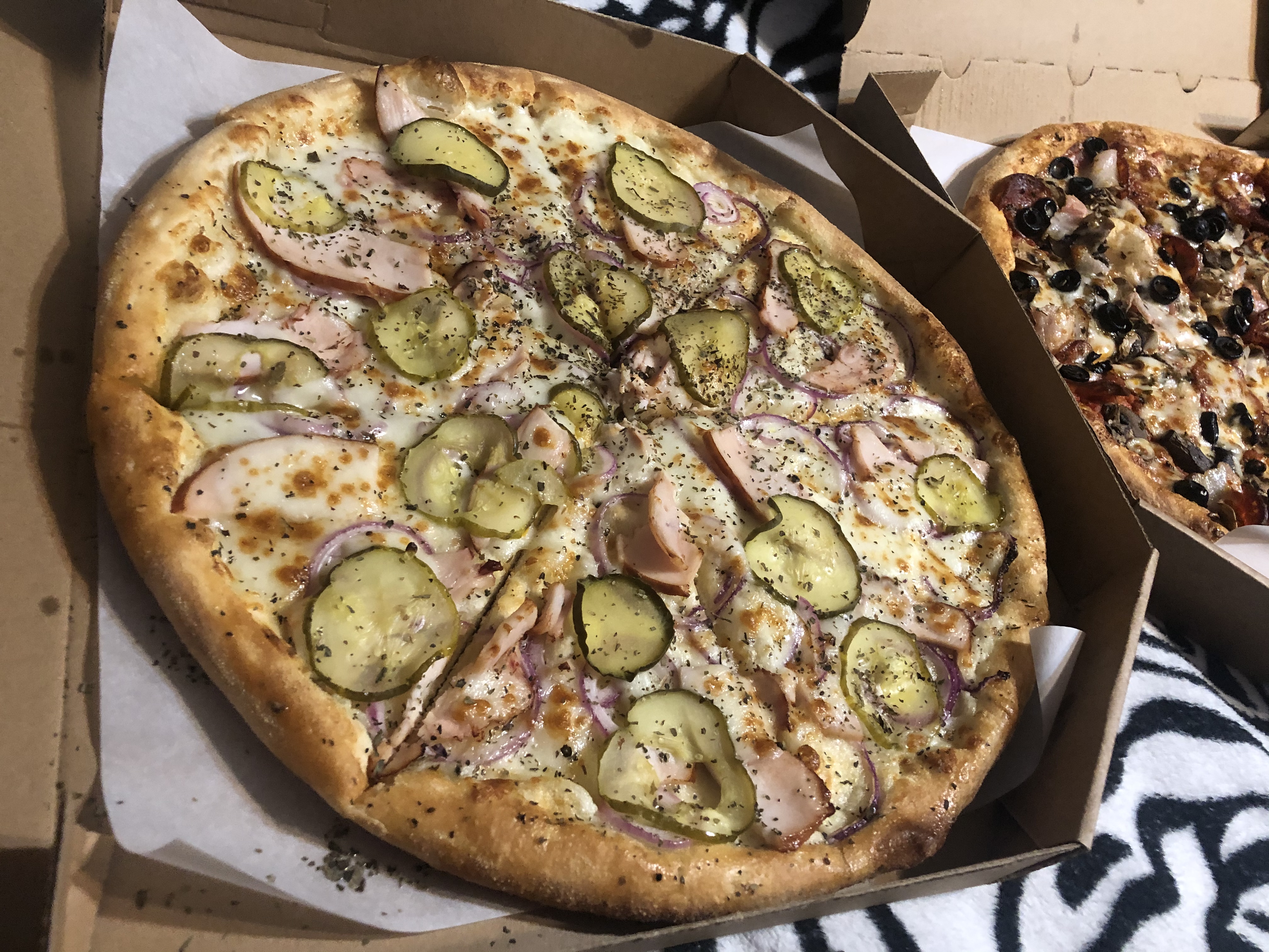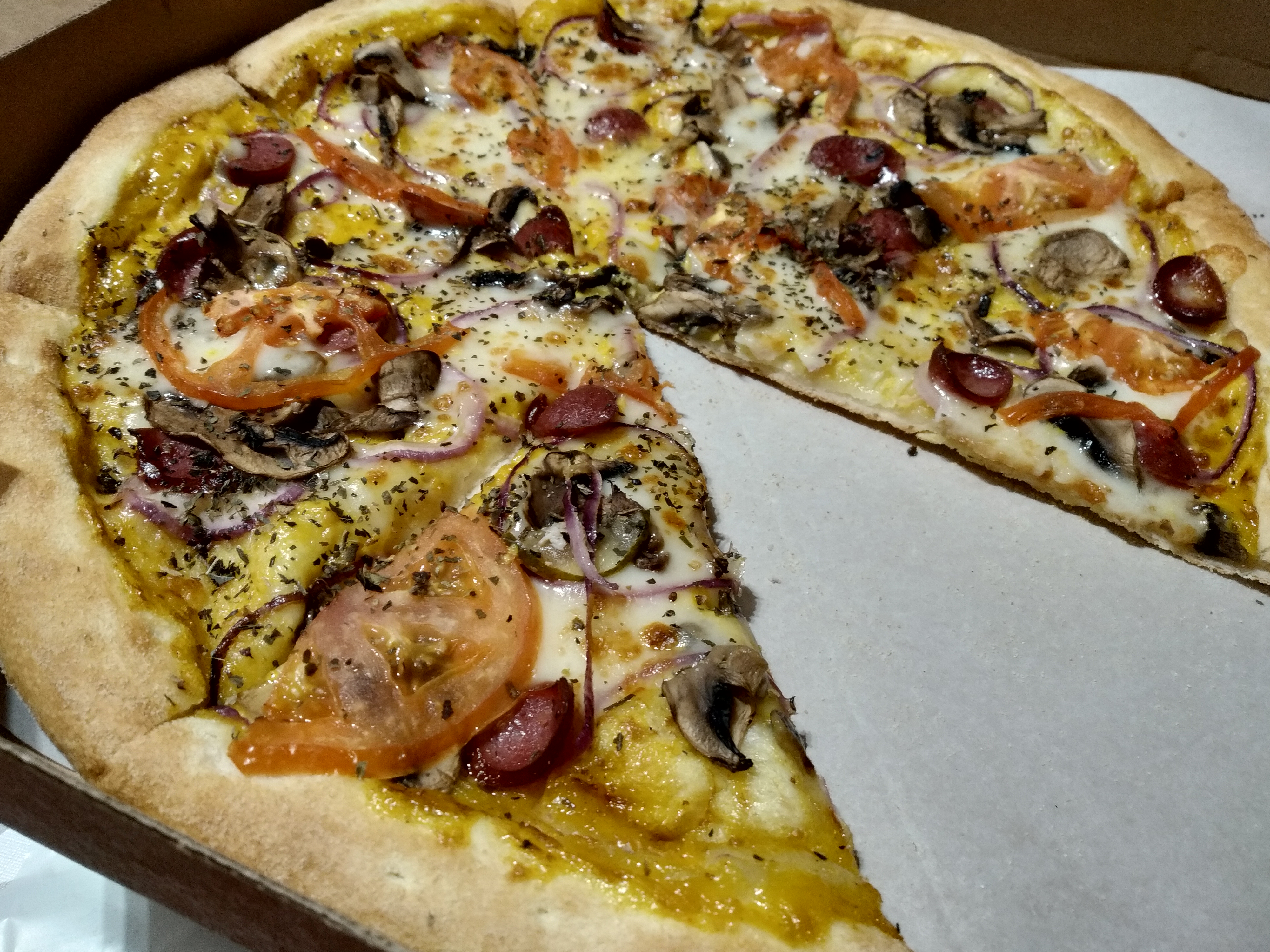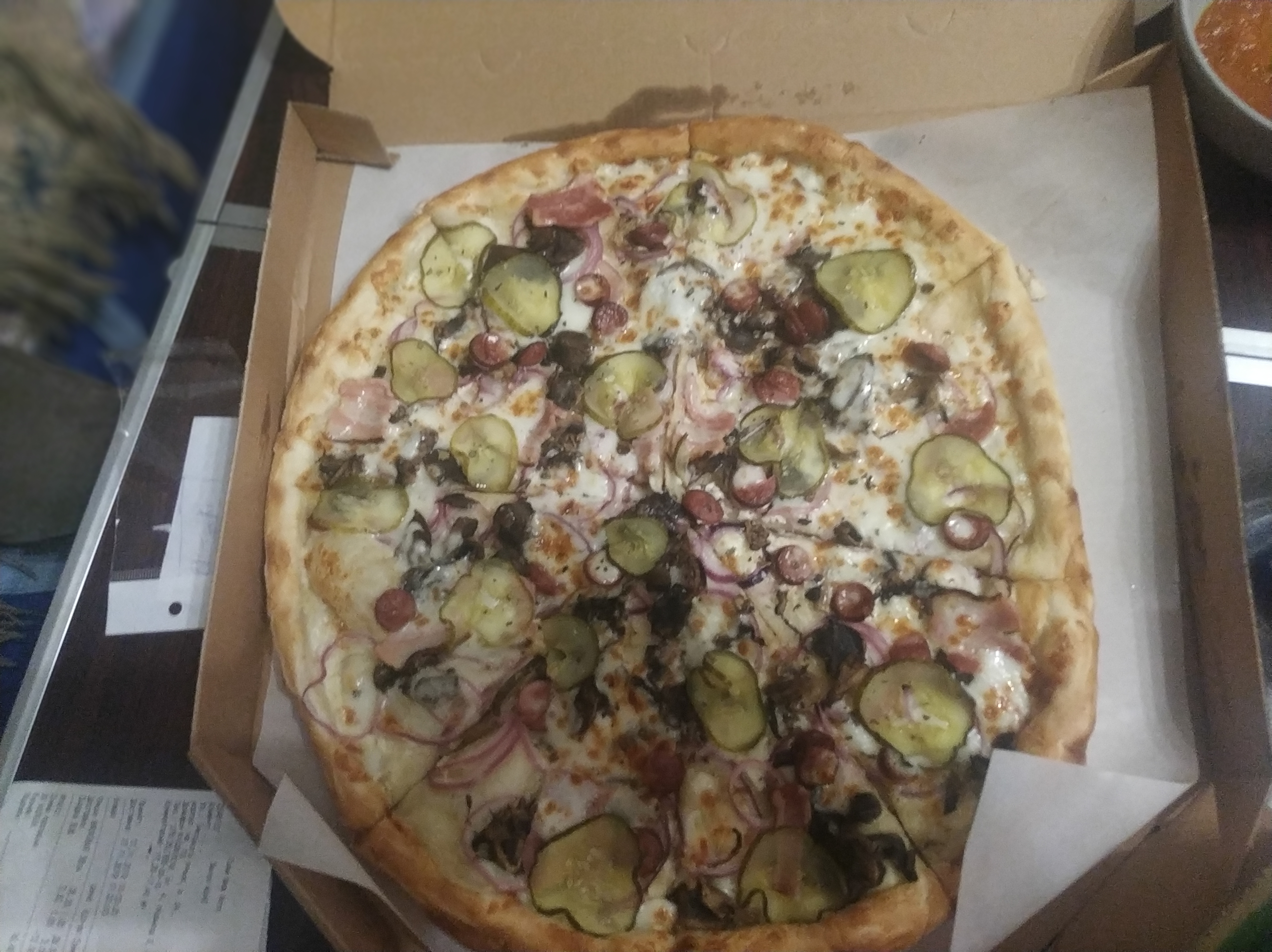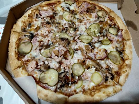- Стоимость пицц идентична при заказе в зале и на доставку.