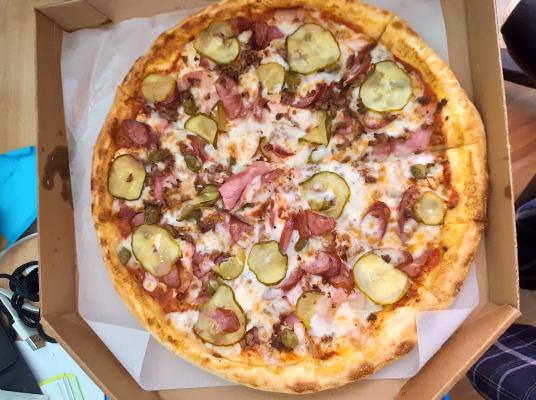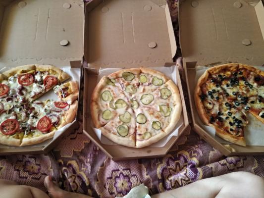- Стоимость пицц идентична при заказе в зале и на доставку.