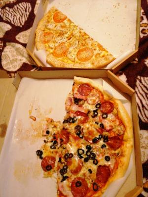 - Стоимость пицц идентична при заказе в зале и на доставку.