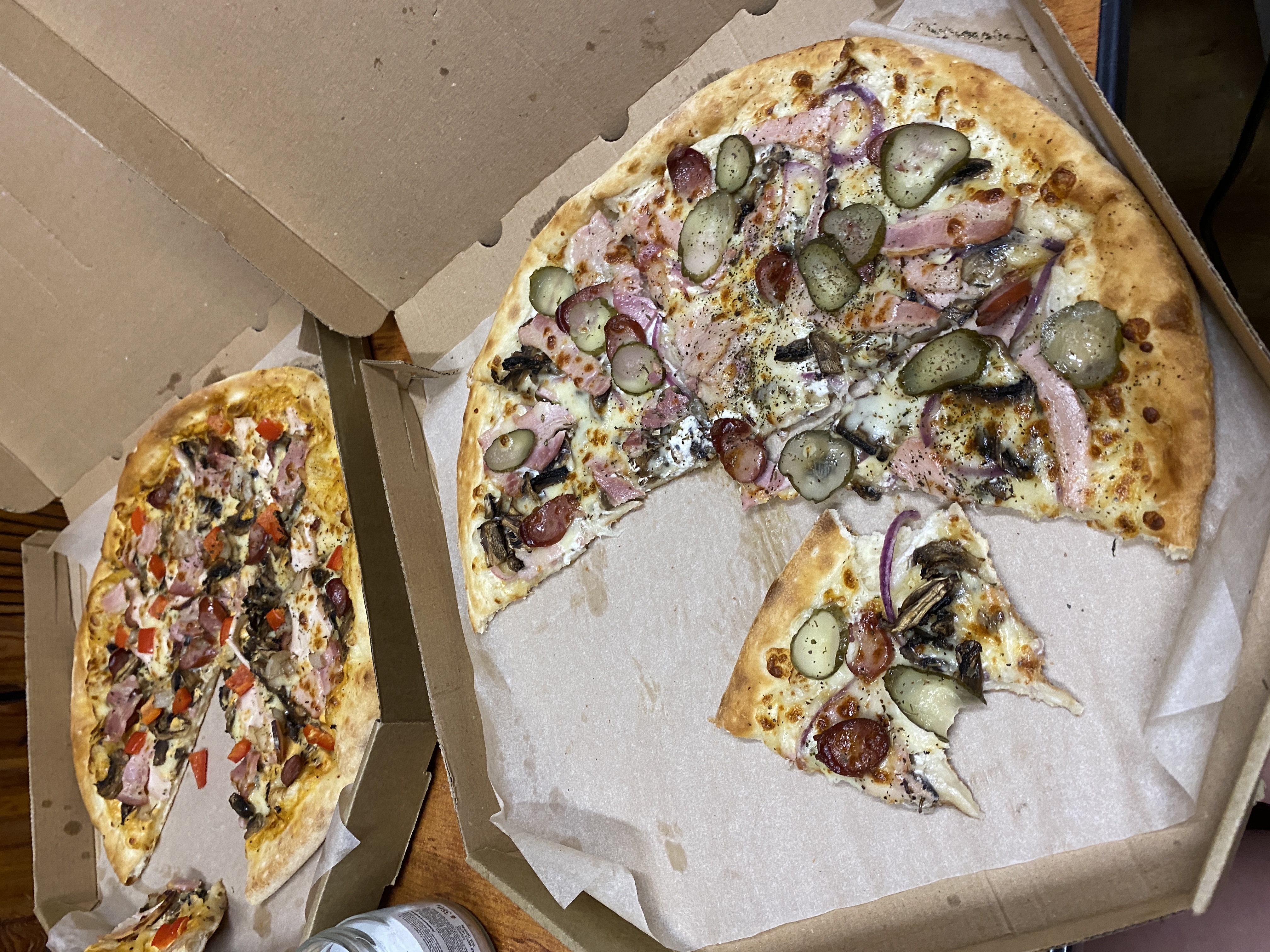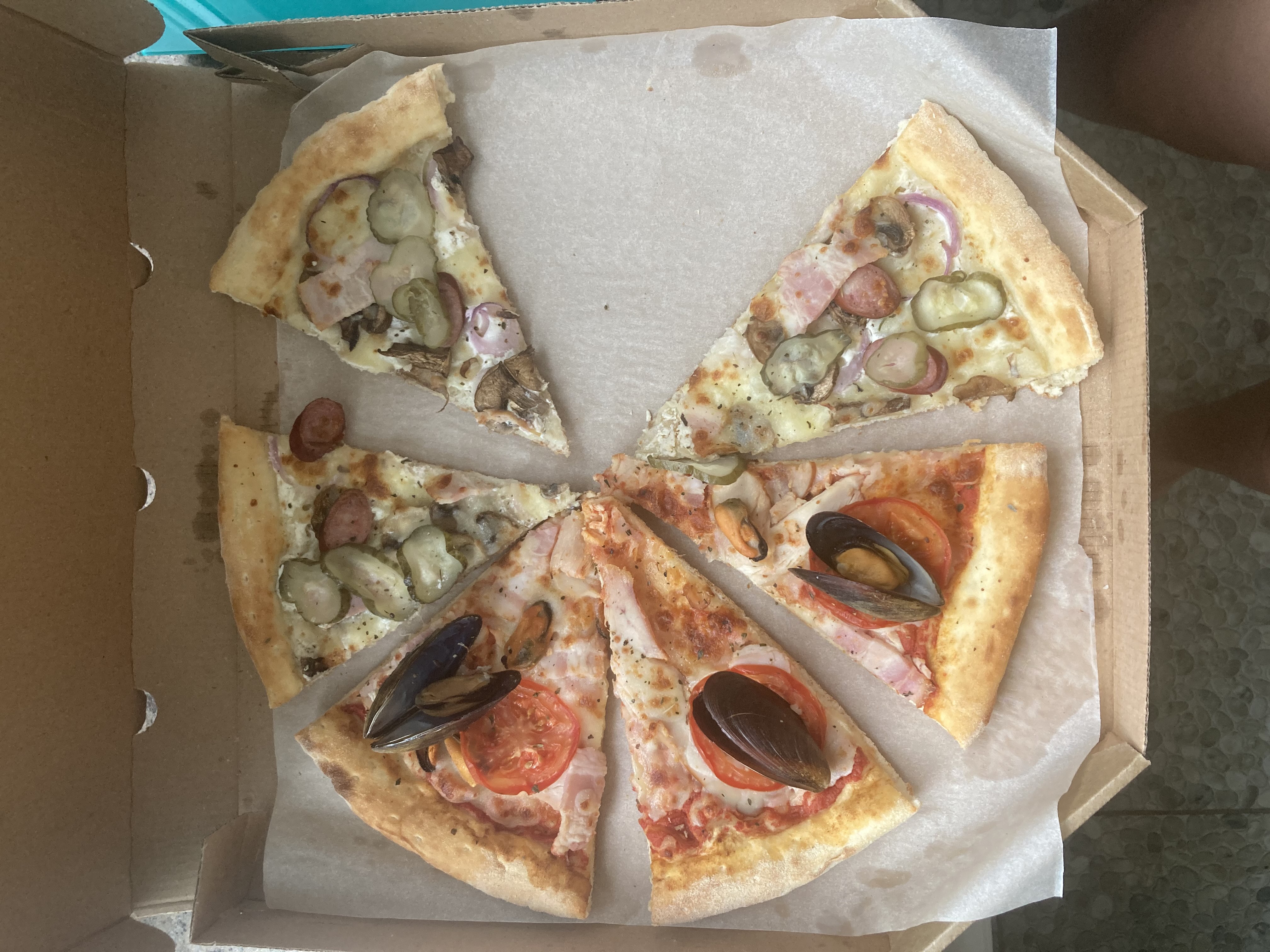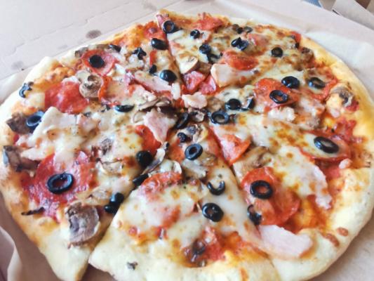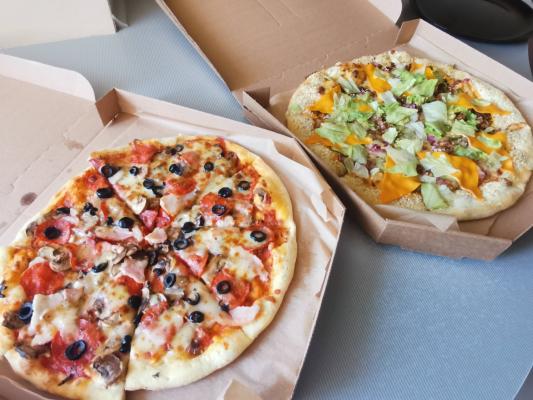 - Стоимость пицц идентична при заказе в зале и на доставку.