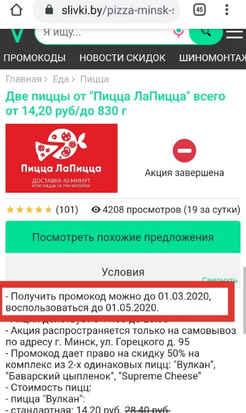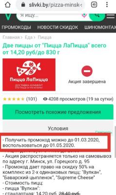 - Промокод дает право на скидку 50% на пиццу от пиццерии "Пицца ЛаПицца"