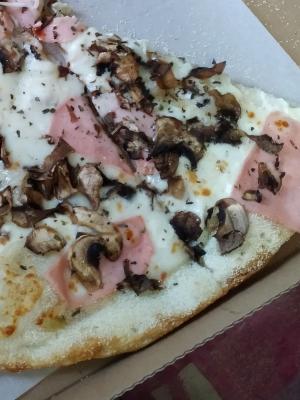 Состав: грибной соус, сыр моцарелла, ветчина, шампиньоны, базилик