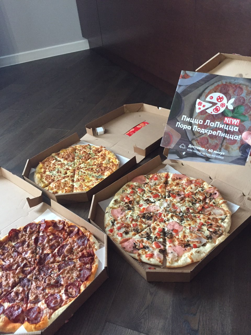 Ели пиццу под название  Лапицца ,большую ,на двоих хватает .