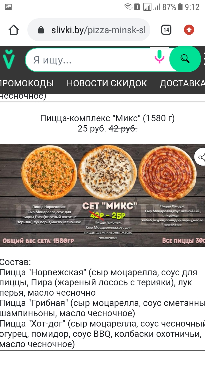 Так какая ж цена на пицца комплекс Микс?