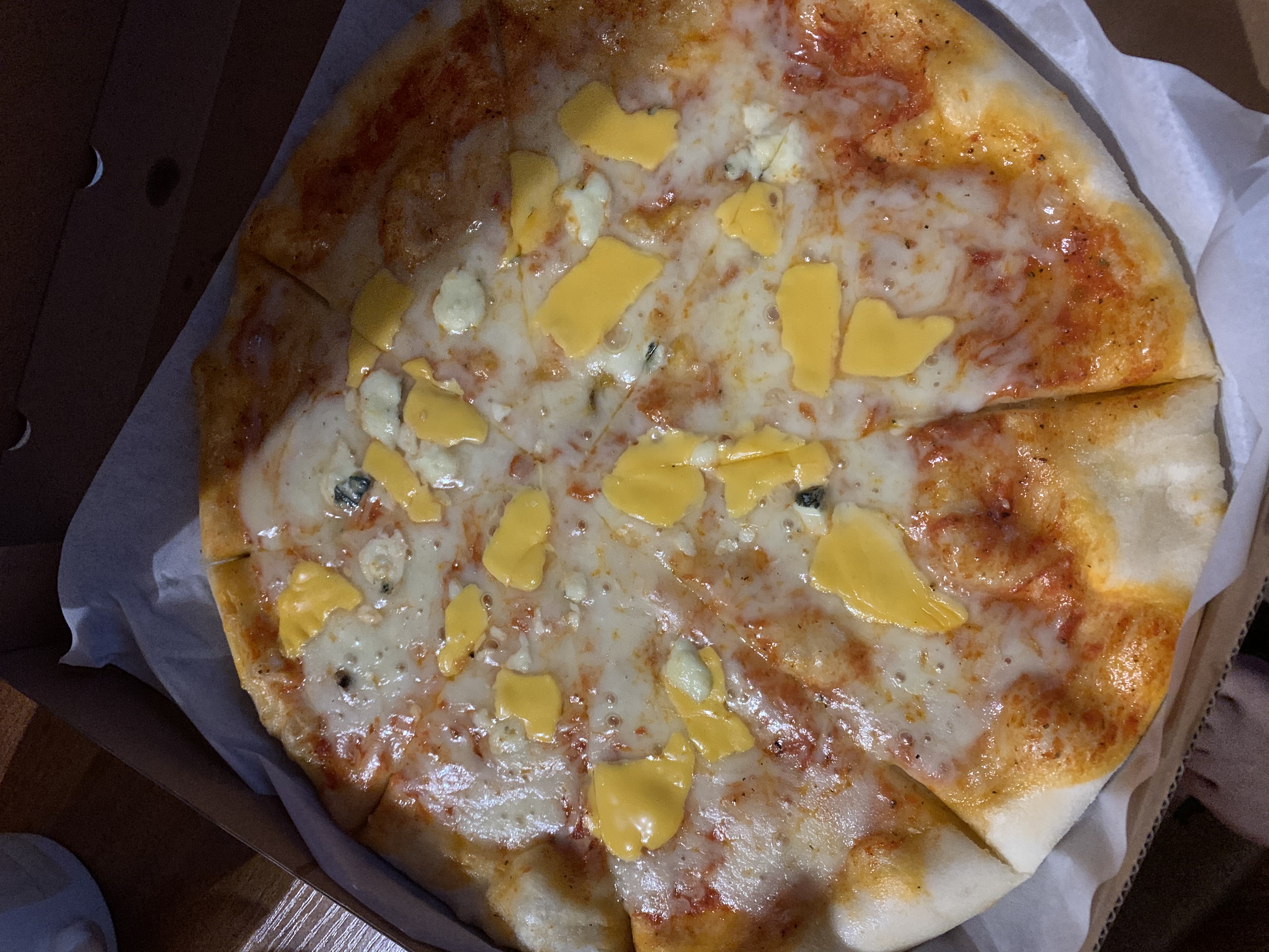 - Пицца "5 сыров" (30 см, сыр Моцарелла, сыр Дор блю, сыр Пармезан, сыр Сулугуни, сыр Чеддер, чесночное масло