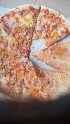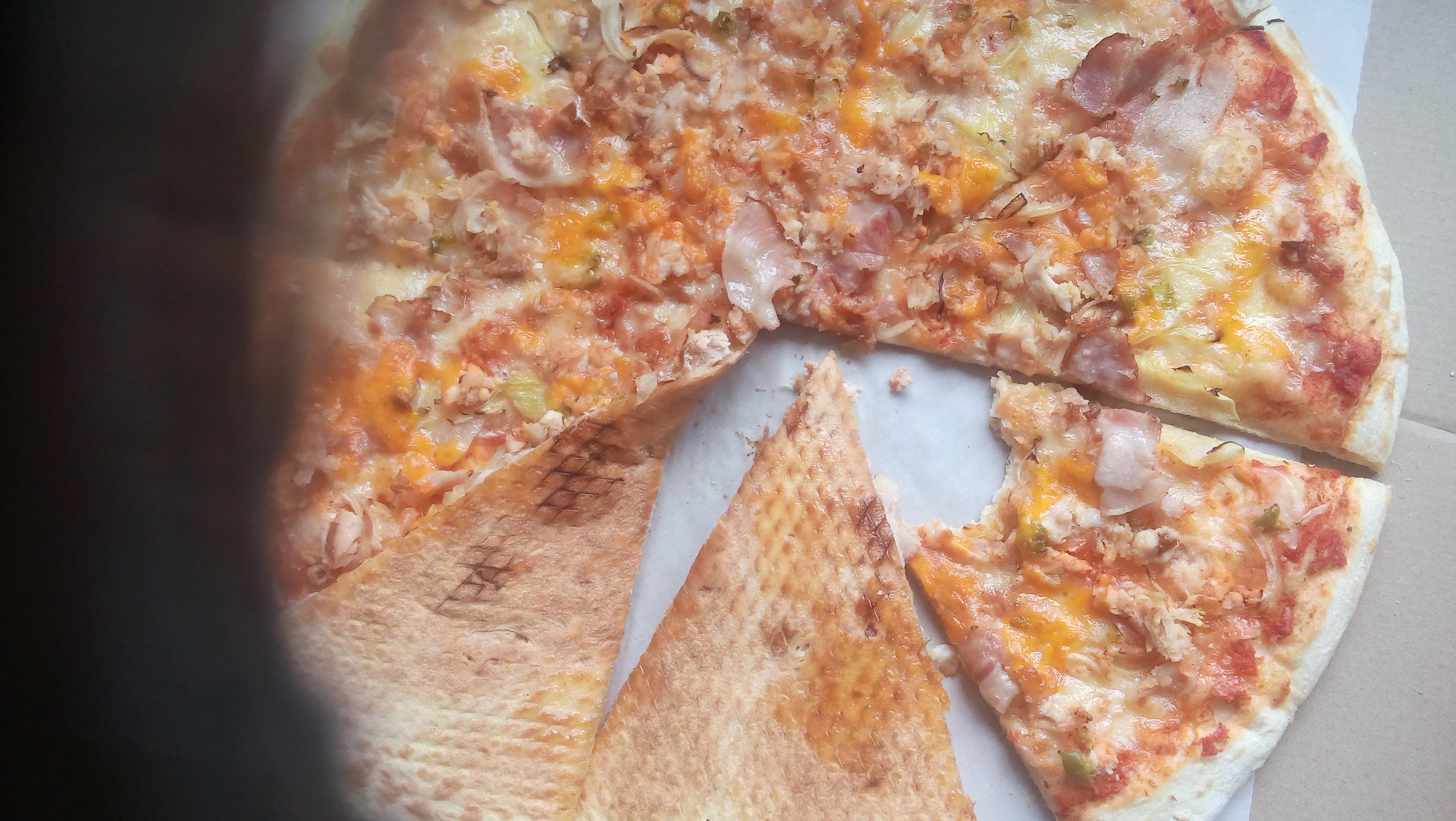 всем привет,часто беру пиццу со сладко острым соусом,пицца вкусная на пышном тесте все супер,сегодня заказал чикен бекон,привезли сухарь,я не знаю может эта пицца так и должна хрустеть на зубах,в общем хотите похрустеть с запахом горелика то эта пицца для вас