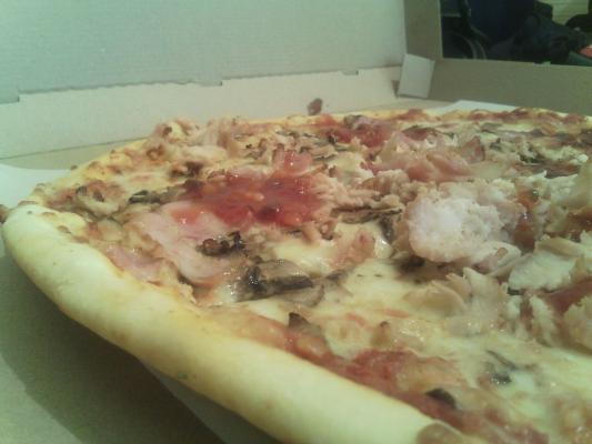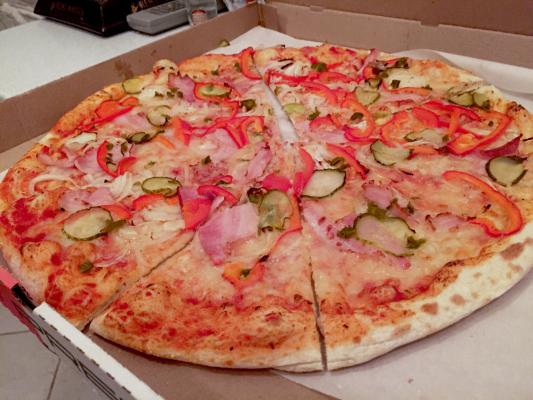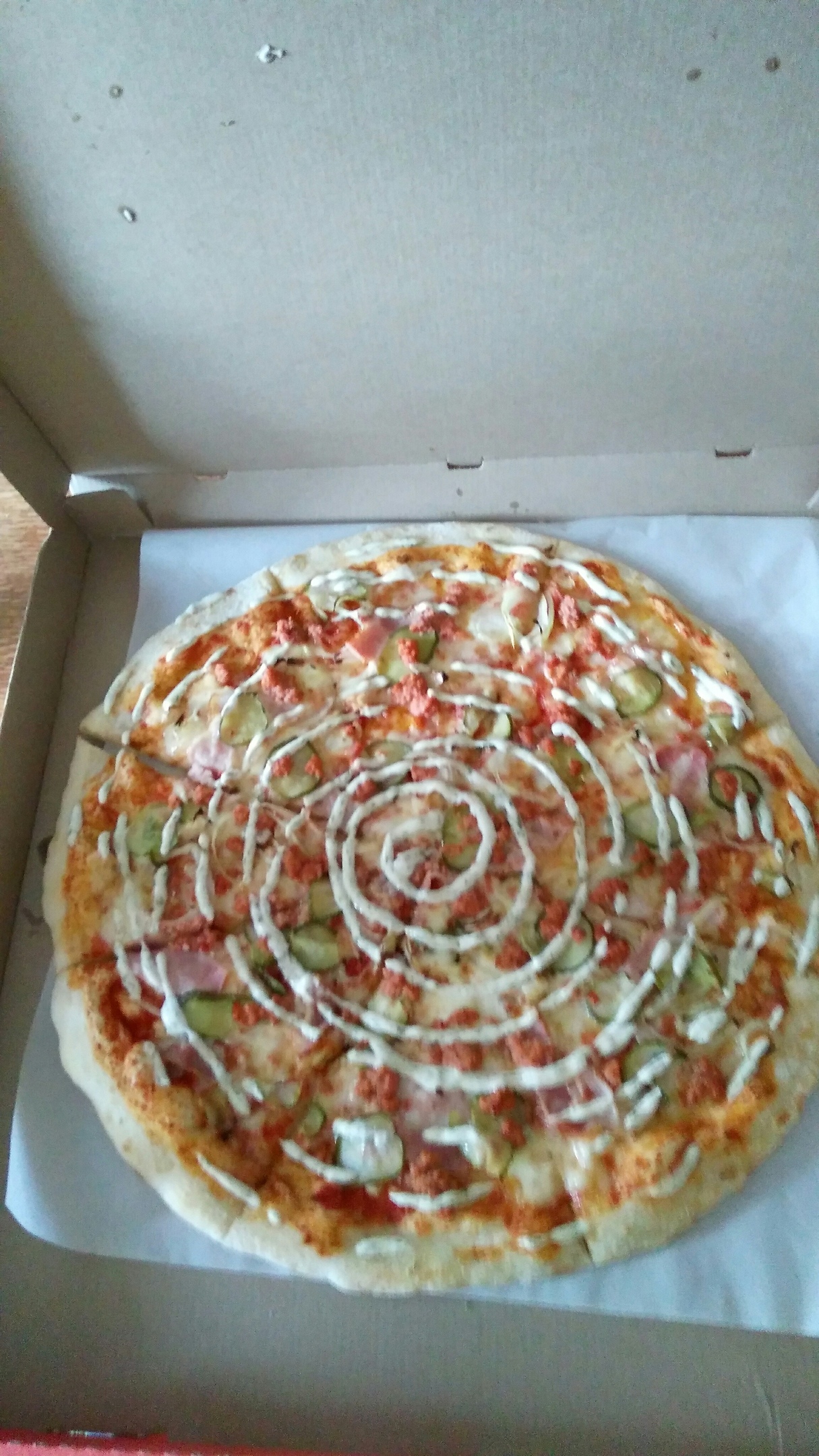Пицца вкусненькая, но вот начинки как то маловато.... в прод.магазинах и то больше кладут.... а так все отлично! доставили горяченькой за 1 ч, размеры конечно сразу ошарашивают)))) Скидки действуют! Рекомендую!
