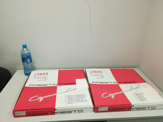 Пишу отзыв уже не в первый раз! Сегодня снова порадовали!!! Отмечали день рождения коллеги и заказывали сразу 5 пицц. Переживала, что доставят позже времени (назначено празднование было на 12,00), потому как с какой пиццерией не сотрудничали, всегда точно ко времени не привозили. Но Presto Pizza просто выше всяких похвал!!! Договаривались о доставке на 11,45. Пицца была у нас уже в 11,42!!! Горячая и вкусная! Как всегда на высоте! Все остались очень довольны! Отдельное спасибо курьеру (к сожалению, имя не спросили, спешили) за такую своевременную доставку! Вы - лучшие! Так держать!!!