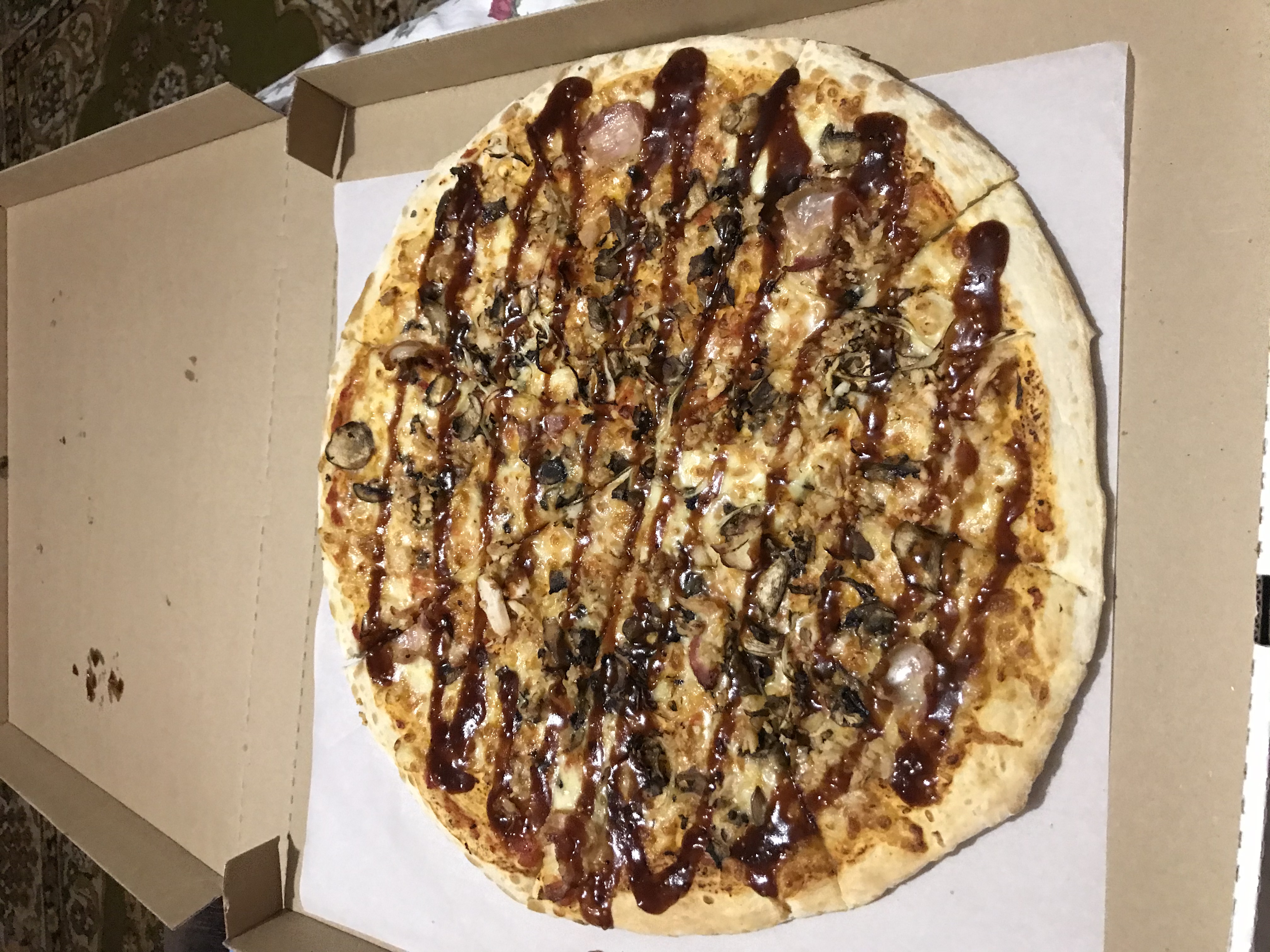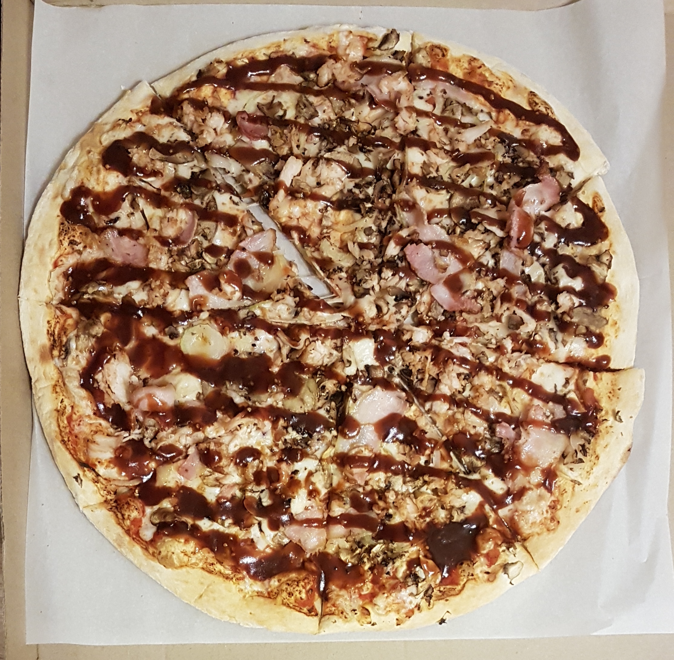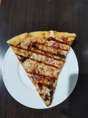 Заказали барбекю пиццу. Супер. Много начинки. Хорошее тесто. Очень вкусно. Молодцы, порадовали!!!