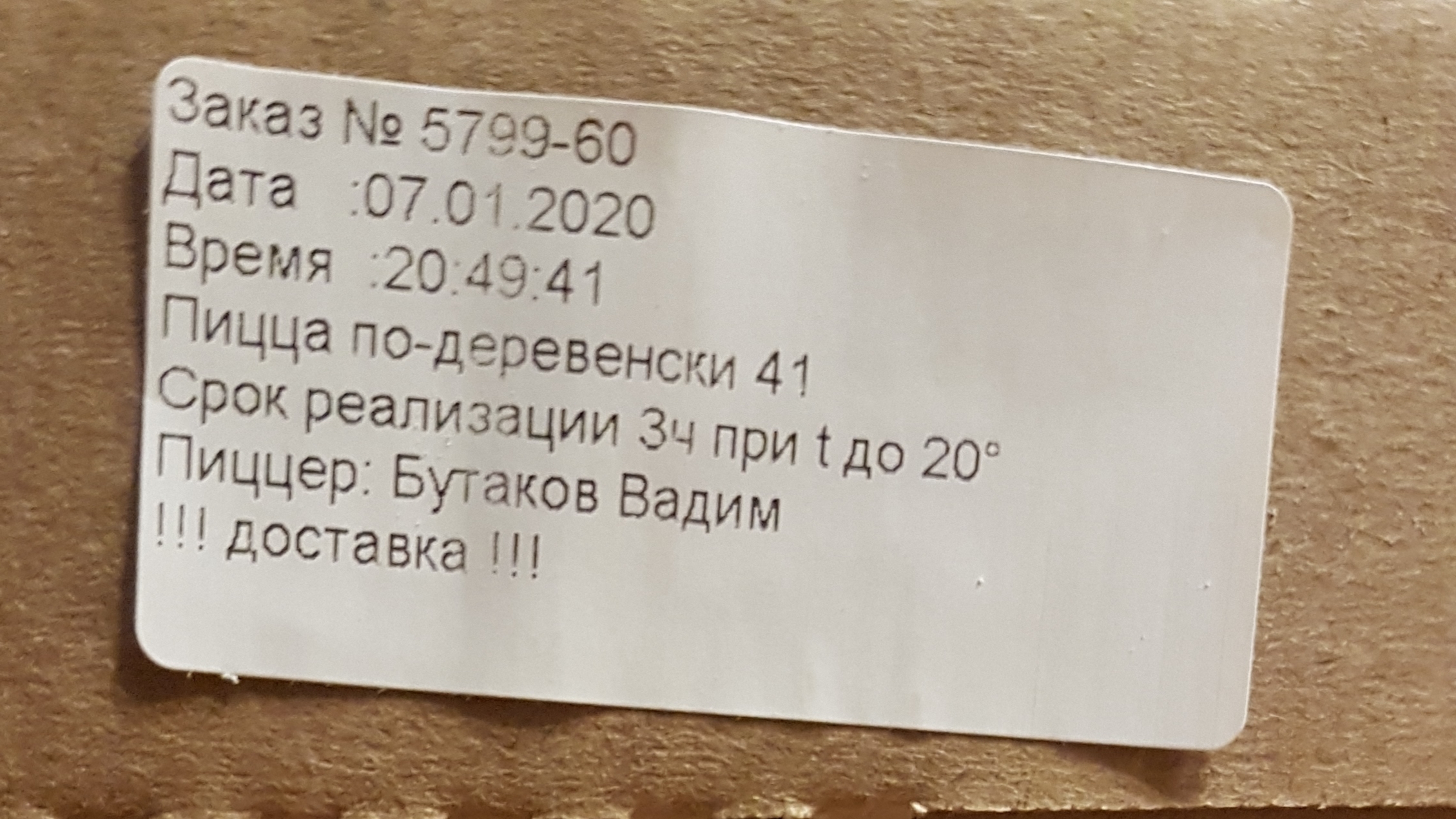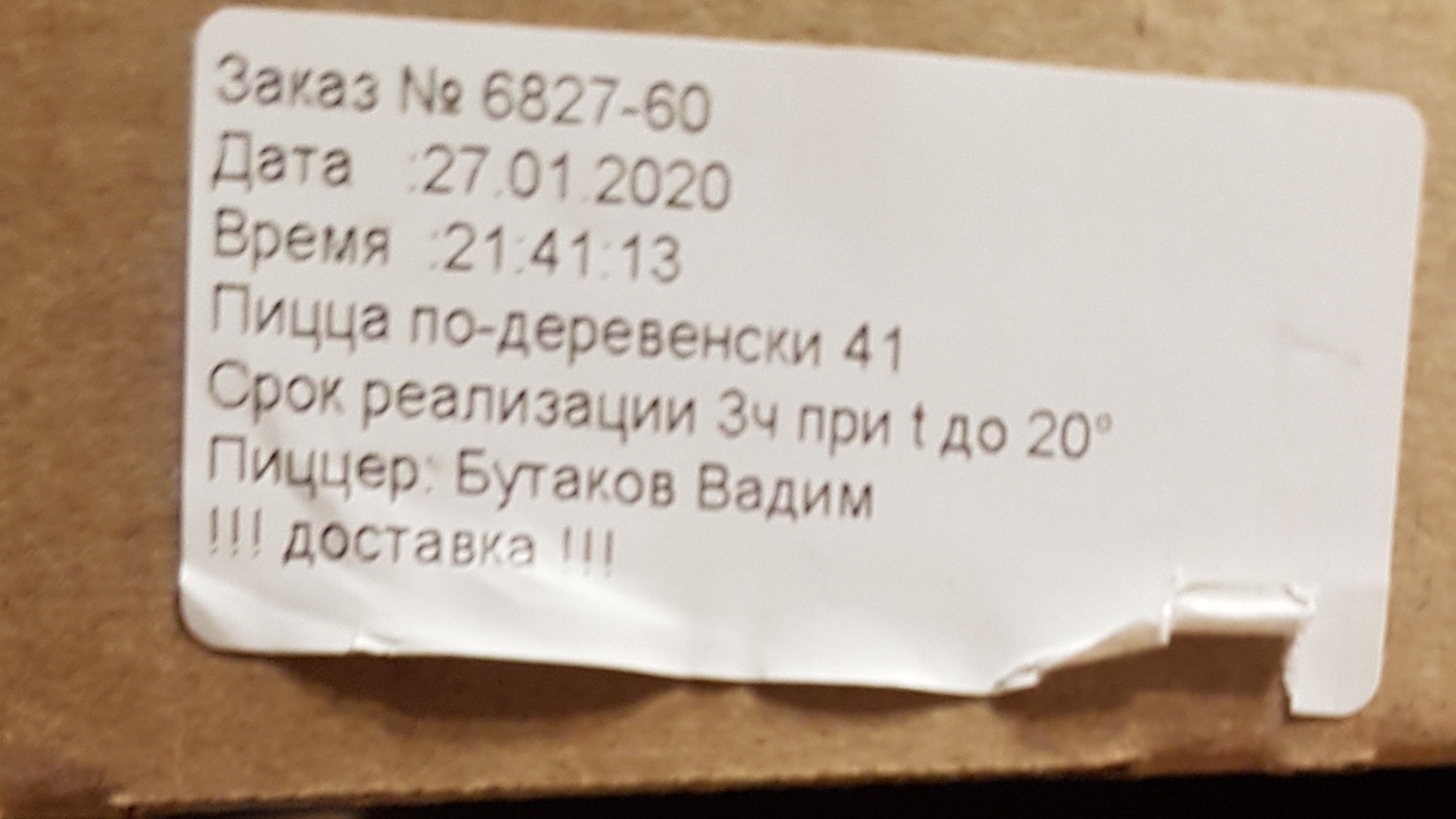 Заказывали пиццу по-деревенски. Доставили втечении часа, почти горячую. Сама пицца была вкусная, начинки достаточно, немного толстое тесто. Спасибо было вкусно!
