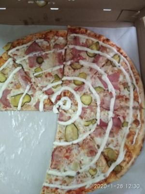 Заказывали ещё в том месяце,забыла оставить отзыв)) пицца супер,вкусная,сочная,соус вкусный,очень вежливый курьер,приехала горячая, сегодня закажу ещё!!