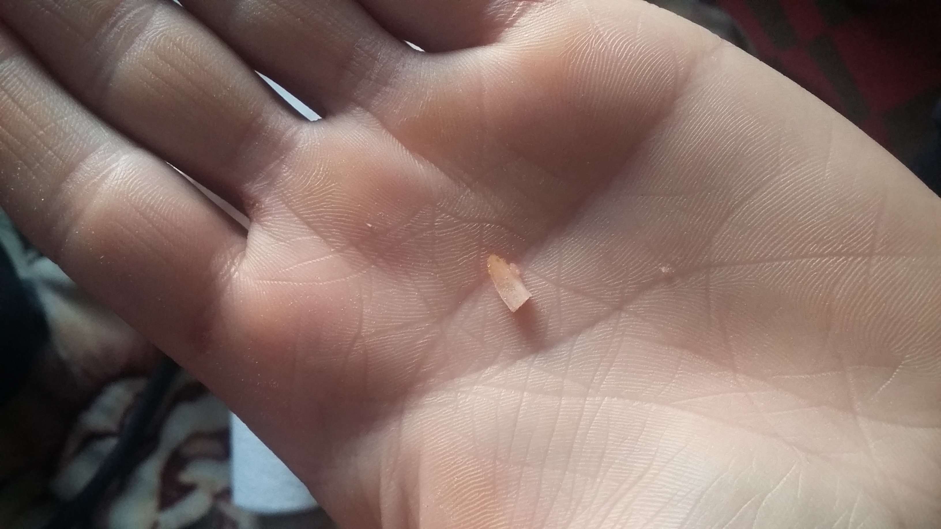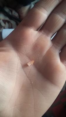 А вот "Мясная" преподнесла свои сюрпризы, на фото представлен кусок кости (?!?!). Человек травлировал десну (кровь пошла). Вроде бы ничего такого, но очень не приятно.. что иносторонний предмет находиься в продуктах пиьания. Вечер испорчен.