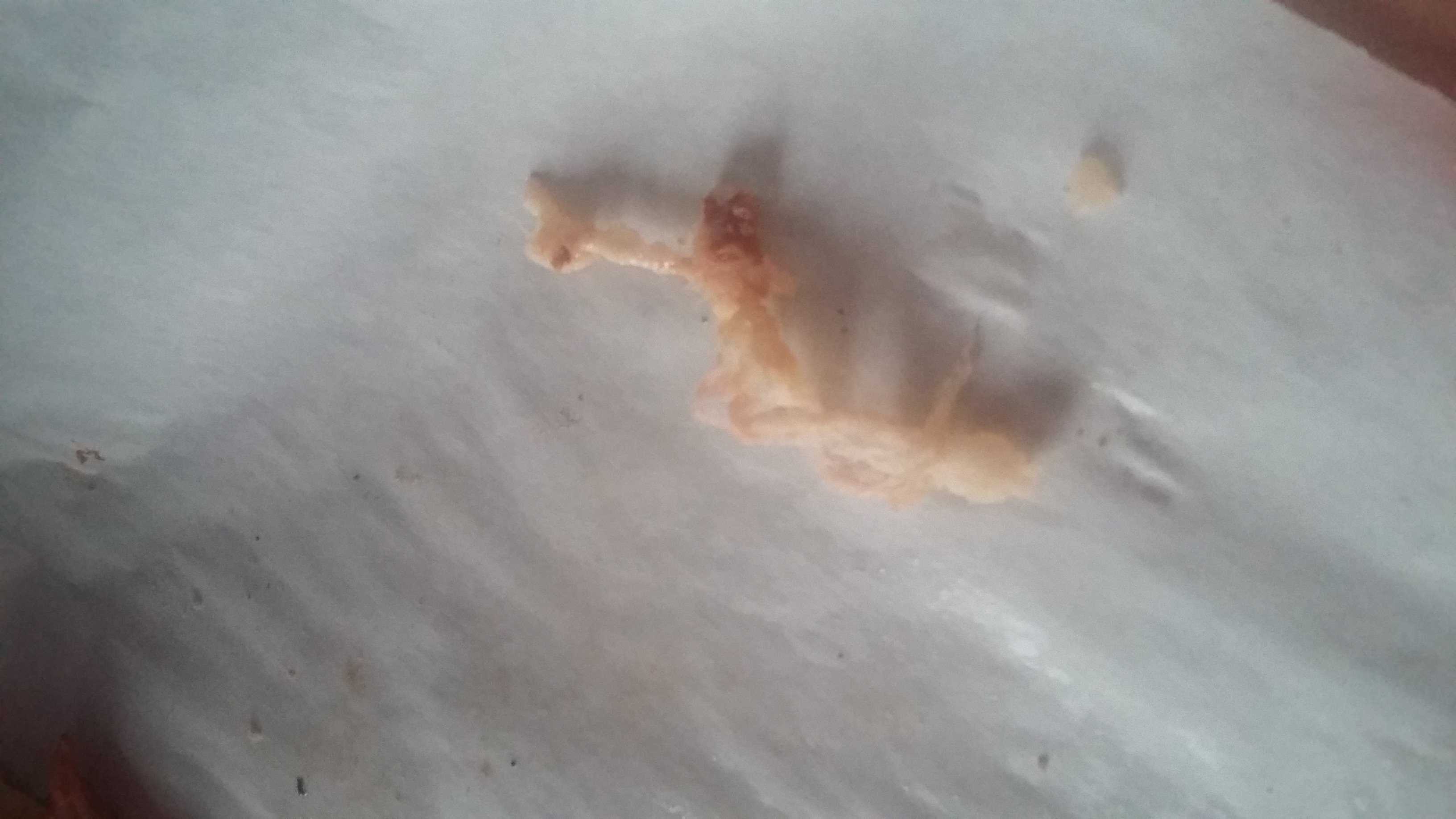 Второму человеку попался кусок салфетки, салфетка в пицце.. да и кусок приличный, ~3 см.