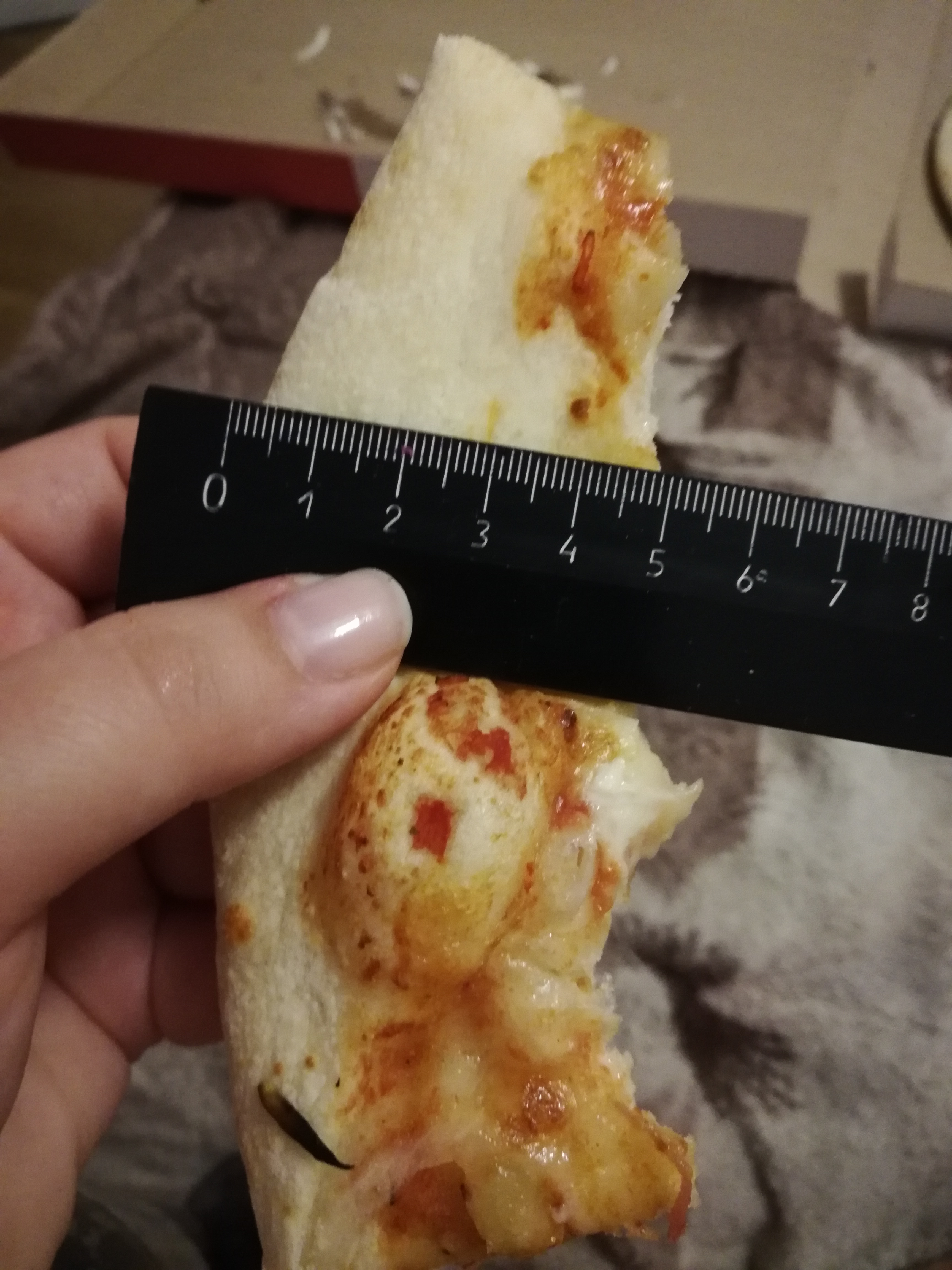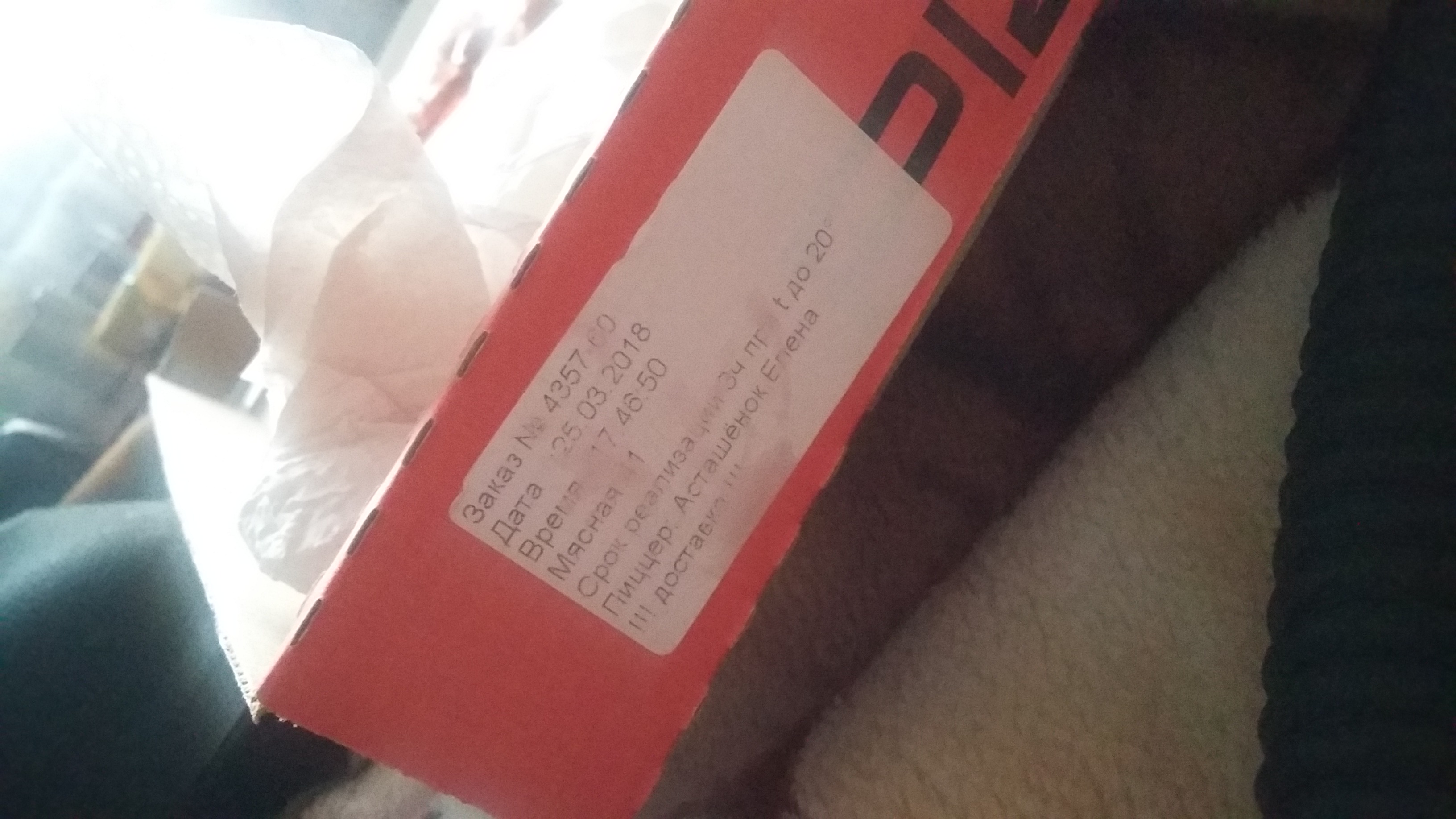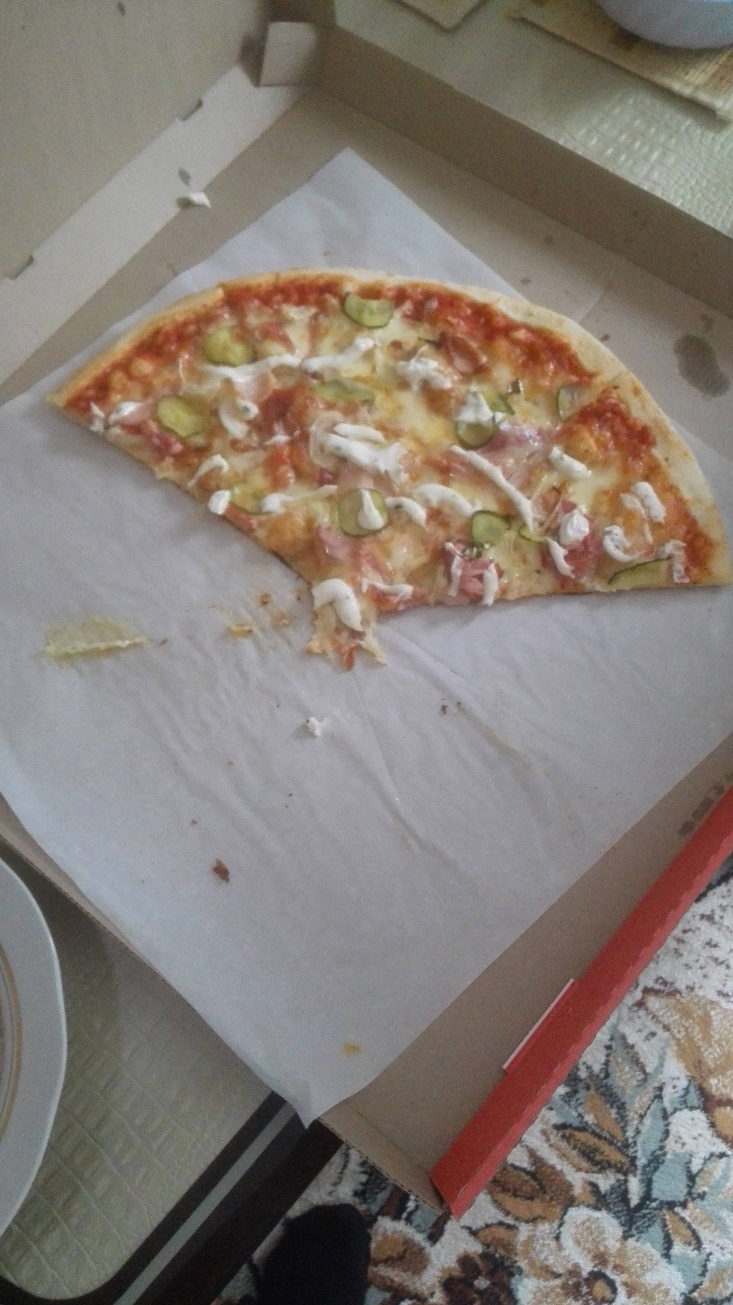 Добрый день. Заказали пиццу сытную. Доставка быстрая, но пицца, конечно, ужас. По виду она явно мала. Жаль, что не взвесила. Не вкусная, недостаточно горячая, и самое главное края. 5 см края без начинки. Я ж батон не заказывала. Заказ был пятница 30.03 примерно в 21. Раньше заказывали и было вкусно. Но сейчас ужас.