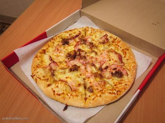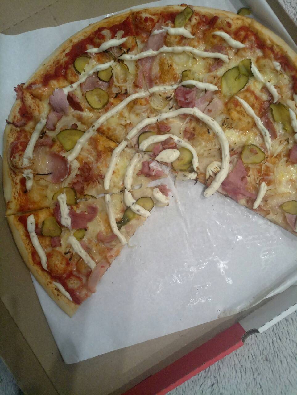 Пицца норм! За свою то цену со скидкой! Привезли оч быстро - примерно 30 мин. Минусы бы назвал, если бы не было скидки, а так 5 звезд!))