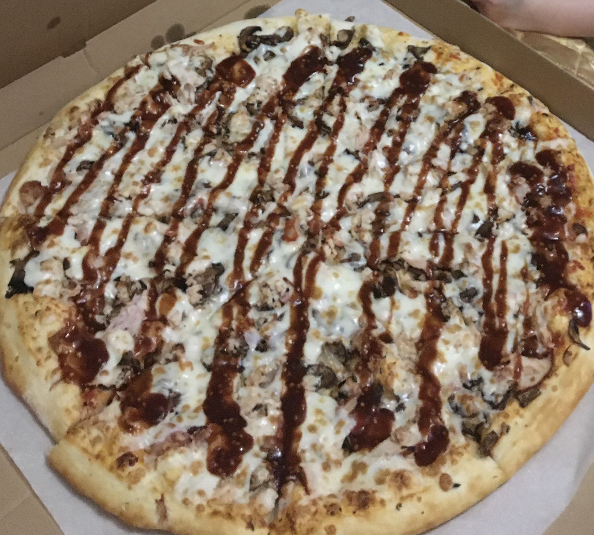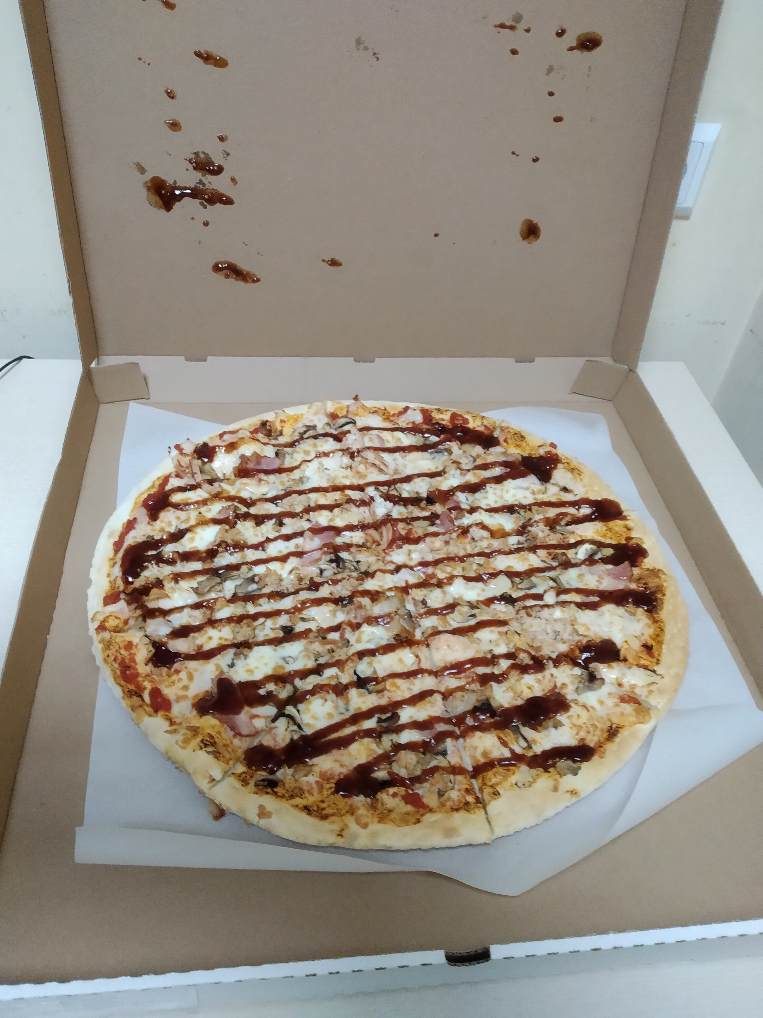 Доставка в течении 25 минут. Пицца «Барбекю» за 13 рублей  лучше любой пиццы за 35! Очень вкусно. Спасибо