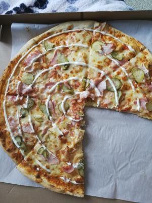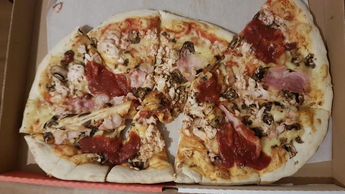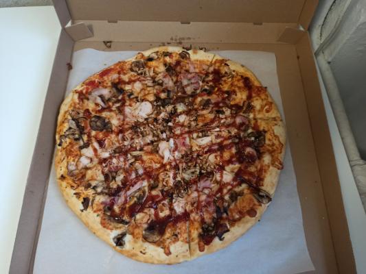 Пицца очень вкусная! Заказывали с друзьями несколько раз и остались довольны. Много начинки, пицца очень сочная. доставка управилась почти за час (будний день). Буду брать снова :)