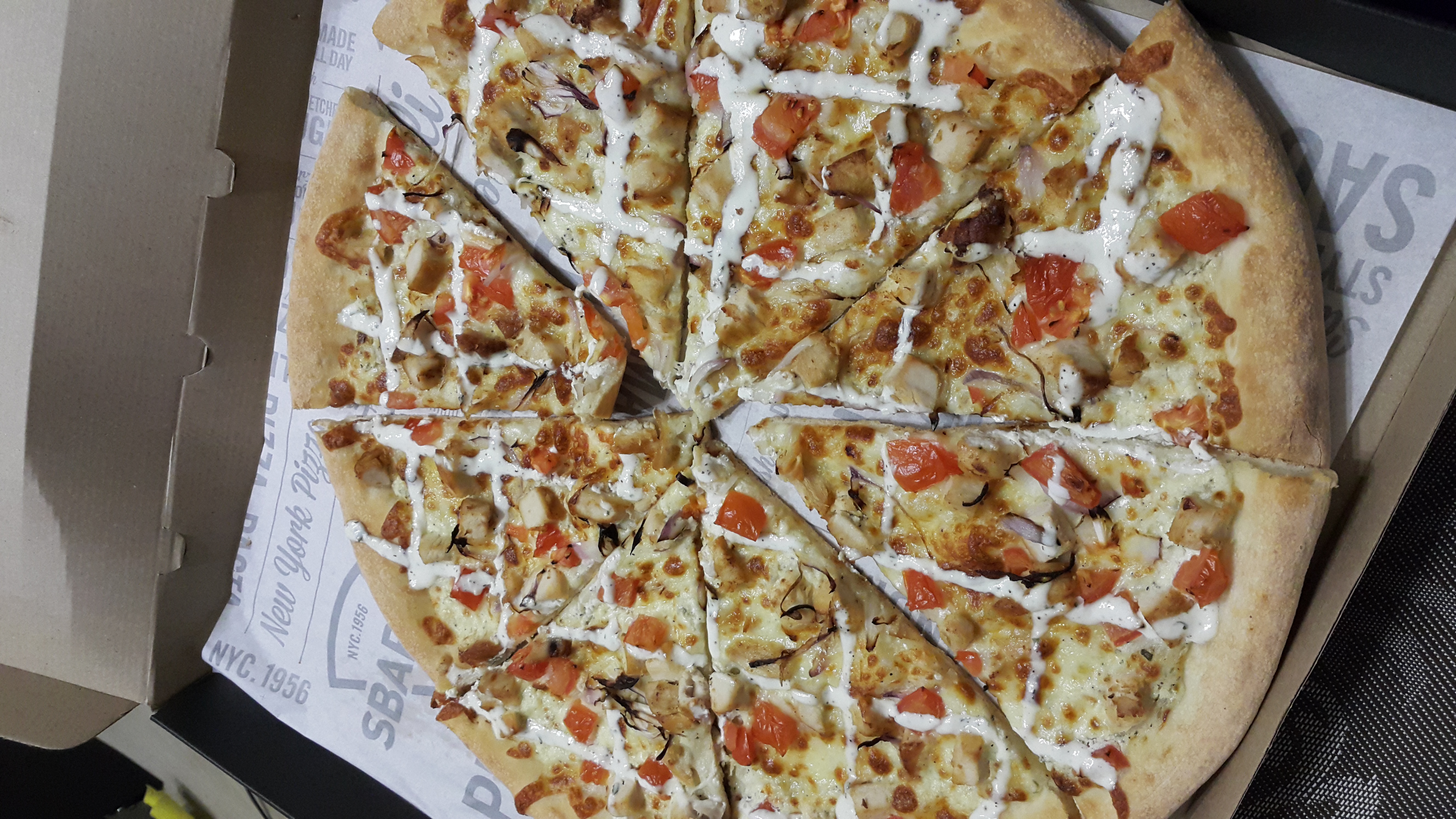Урааа, словили код! Спасибо Sbarro, нам было очень вкусненько. Курьер принес пиццу даже меньше чем через обещанных 45 минут. Большая, вкусная и горячая. В дополнение заказали 2 соуса барбекю, оказались в неожиданно больших баночках и очень вкусные.