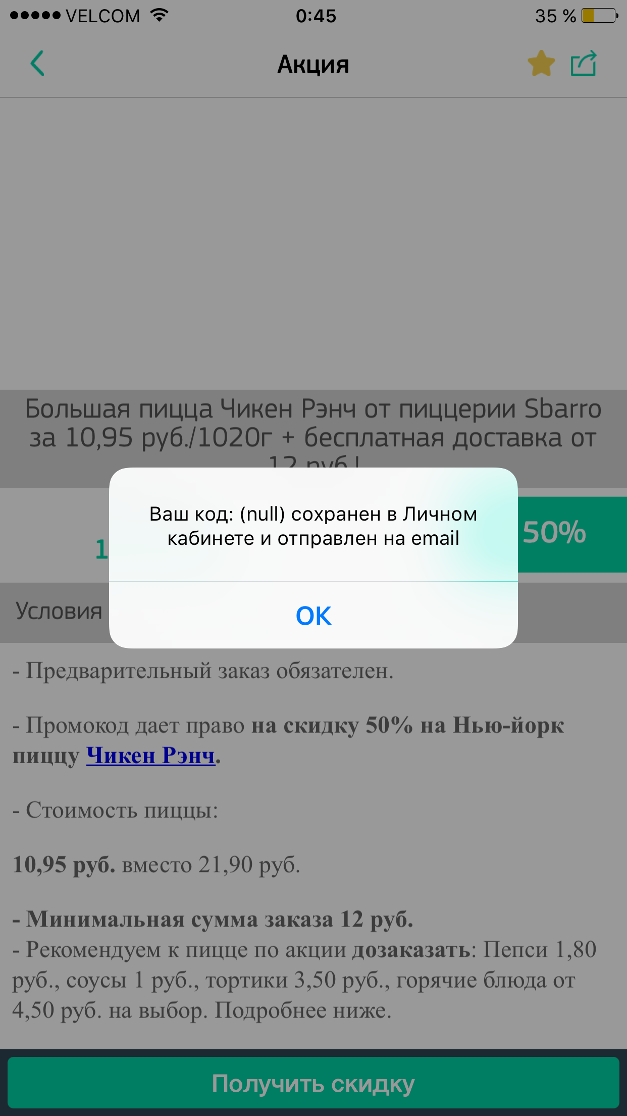 Сегодня код удалось приобрести сразу. Уже предвкушаю вкусную пиццу на ужин)))