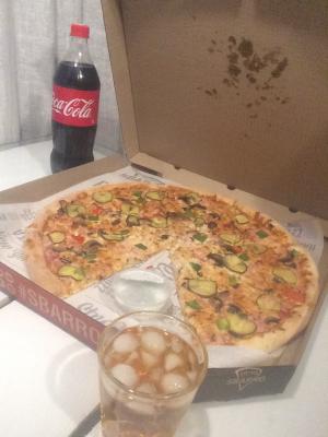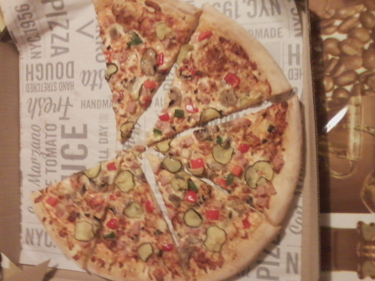 Доставили пиццу за 25 минут. Приятно. Сама пицца суховата, хотелось бы ещё начинки.