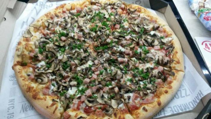 Огромная пицца за скромную цену . Тёплая, вкусная , с множеством ингредиентов !!! Привезли минут за 30-35 :) спасибо !!
