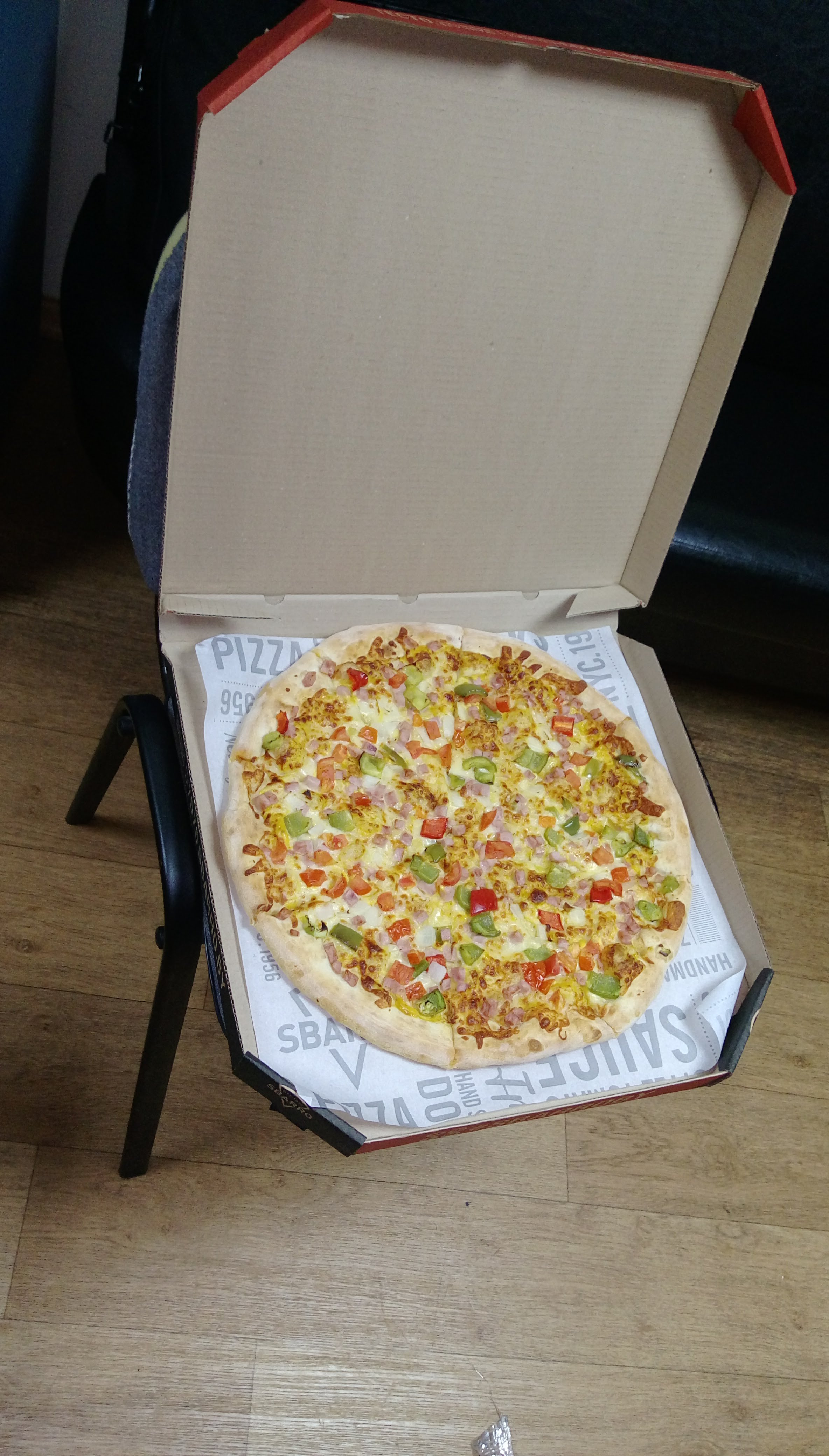 Все норм, заказали по телефону, сказали время доставки 1 час 20 где-то, но привезли через минут 40, пицца норм, но мне не хватило сыра, тесто свежее, воздушное, мужу оч понравилась, мне больше нравятся другие.