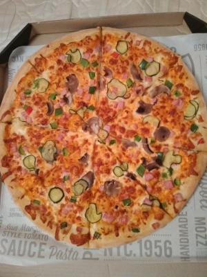 Заказывали ветчина и грибы, очень понравилась. Тесто мягкое воздушное. Курьер привез где-то через 1час 20мин.