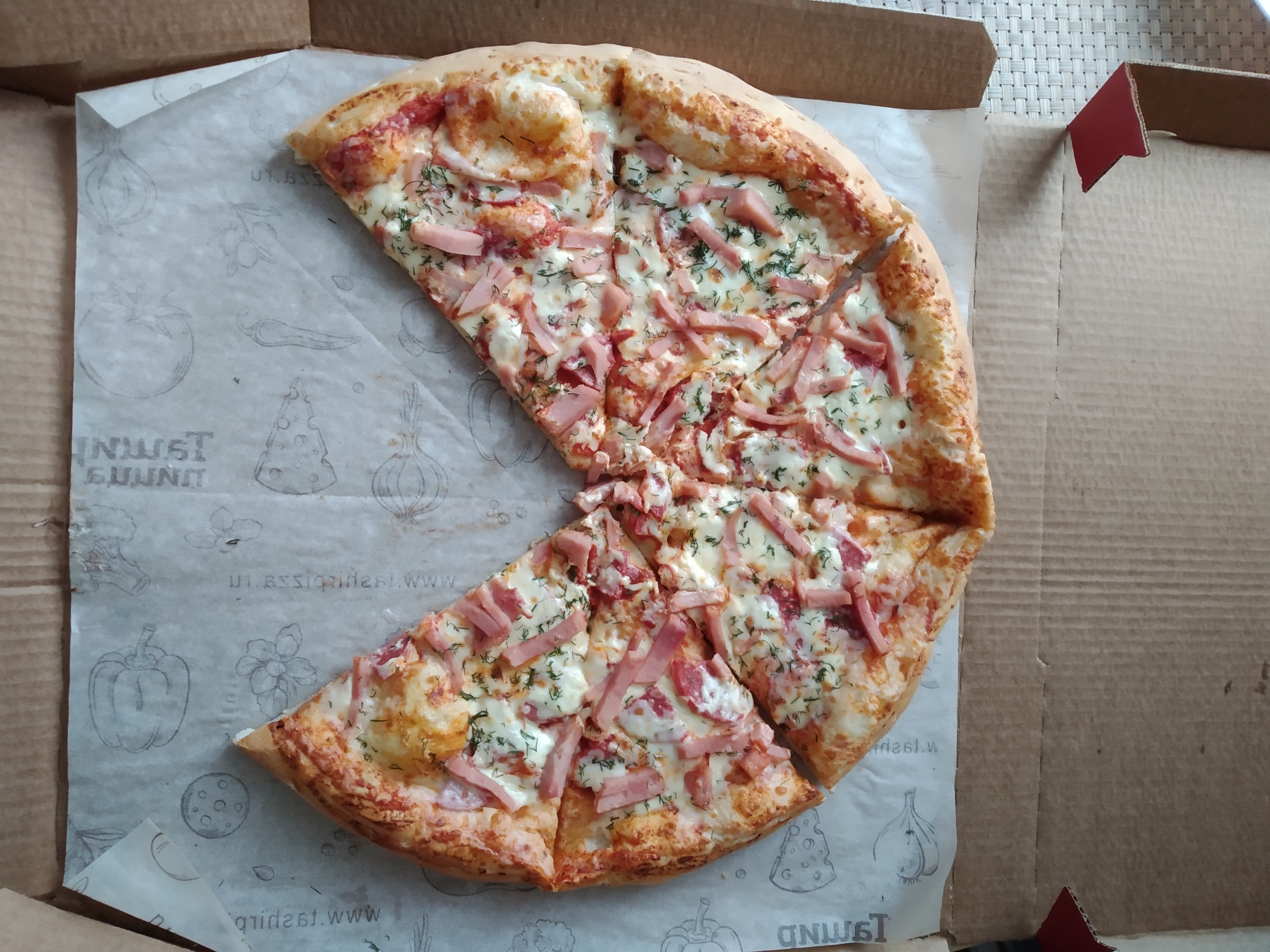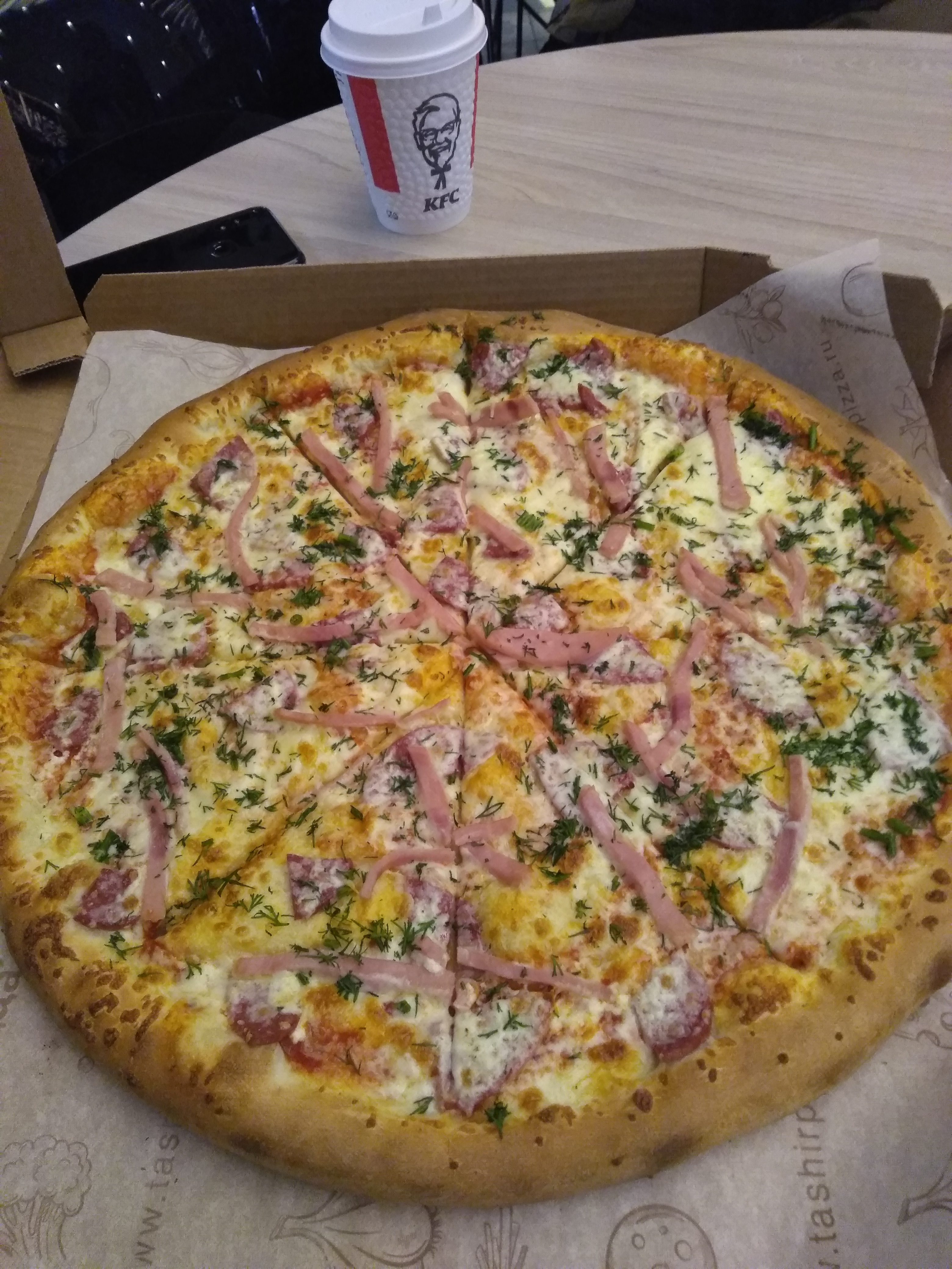 В Ташир пицце ещё ни разу не брали. Нормальная пицца. Как по мне главное, что не сухая. Начинки достаточно. Брали "Альтоно". Вдвоем наелись пиццей сполна.