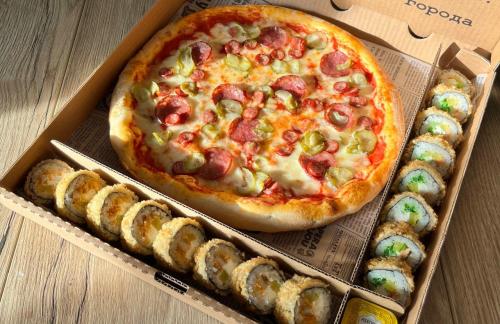 Брали пиццу в пятницу вечером в ТЦ Галлерея, ждали 10 минут. Пицца в меру вкусная, очень сытная , так как тесто толстое. Попросила контейнеры,чтоб унести домой, предложили бесплатно контейнеры или коробку меньшего размера, а к коробке специальный пакет для коробок из под пиццы.