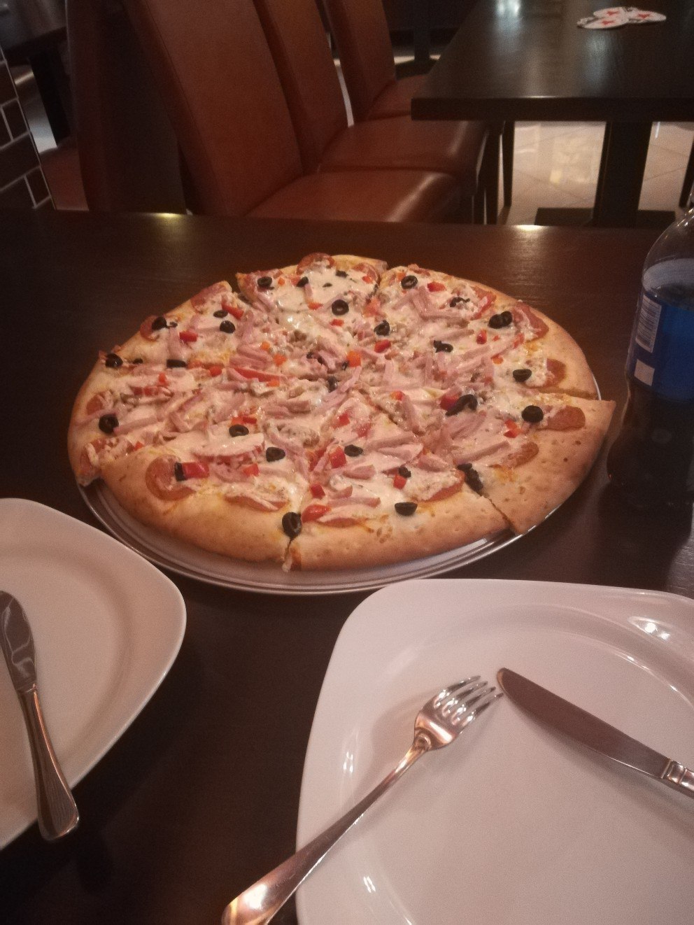 Пицца вкусная, немного суховата корочка, но это терпимо. Код работает, персонал вежливый.