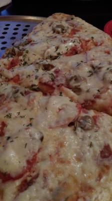 Состав: пепперони, окорок, шампиньоны, маслины, помидоры, сладкий перец, сыр "Моцарелла", соус "Маджорио", орегано.