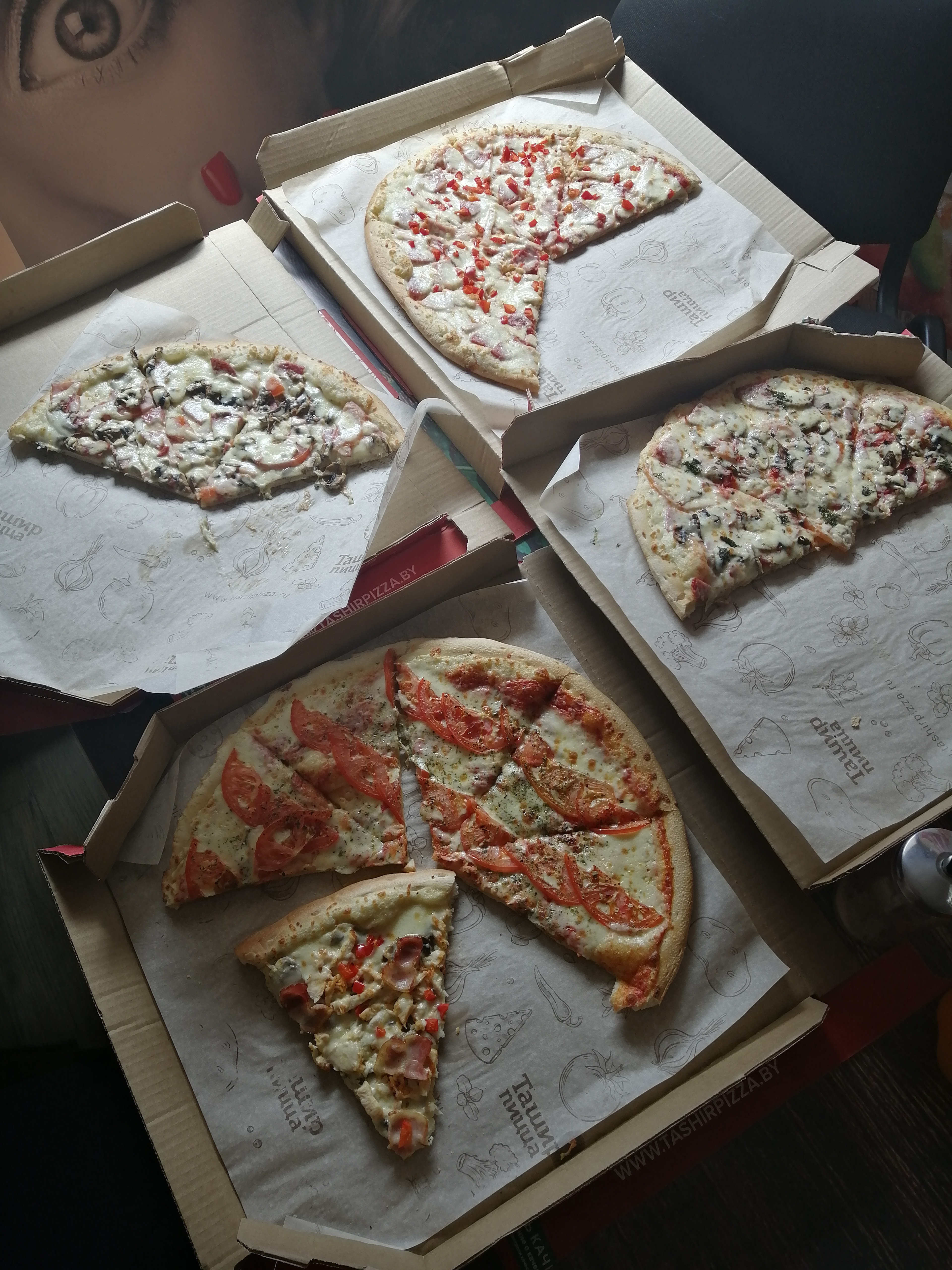 Брали четыре пиццы. Всё очень вкусно и сытно
