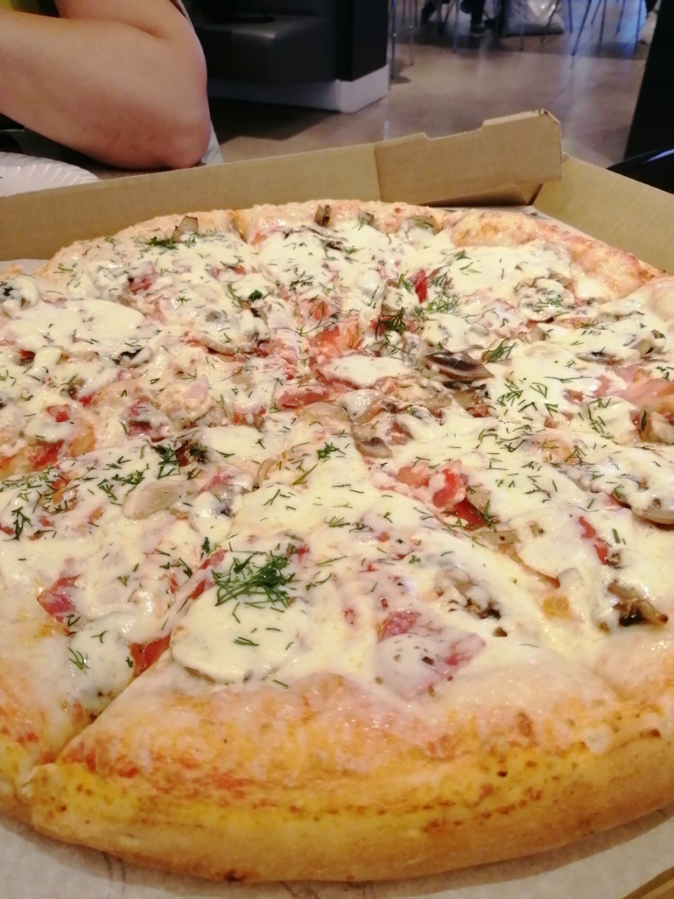 Брали 2 пиццы в Галереи - барбекю с халапенью и пеперони. Всё понравилось !