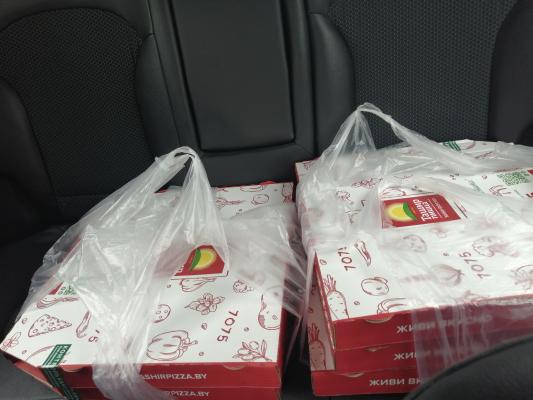 Большие пиццы, много начинки, всем коллективом не смогли осилить, спасибо!