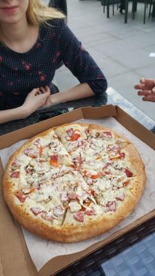 Вкусная пицца, есть конечно вкуснее в минске, но за свою цену огонь!