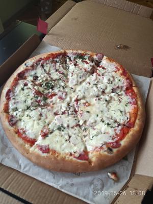 Несколько раз покупали пиццу, все в целом отлично, за исключением пиццы 4 сыра... К сожалению вышла очень сухой, на вкус как лаваш с сыром.