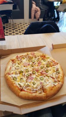 Ну не знаю,то ли мне повезло,но пицца очень вкусная,брали на Галерее пиццу курица с беконом,огромная и очень вкусная,прям из печки,приготовили за 30 мин)никто с упреком не смотрел,что мы по сливкам,наоборот очень милая и приятная девушка)остались довольны,с радостью придем еще,ведь очень крутая пицца за такие небольшие деньги😍