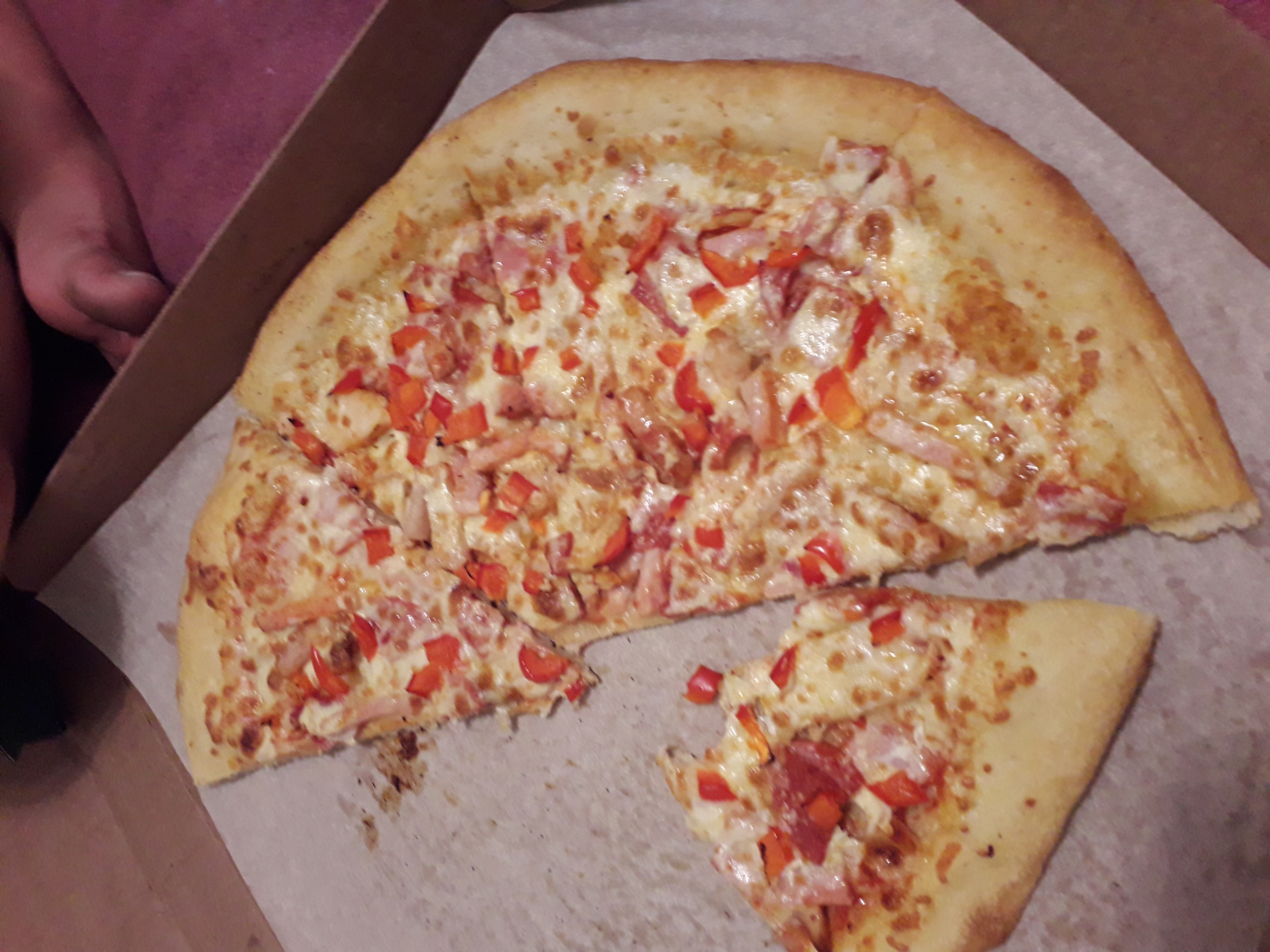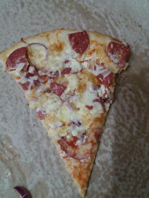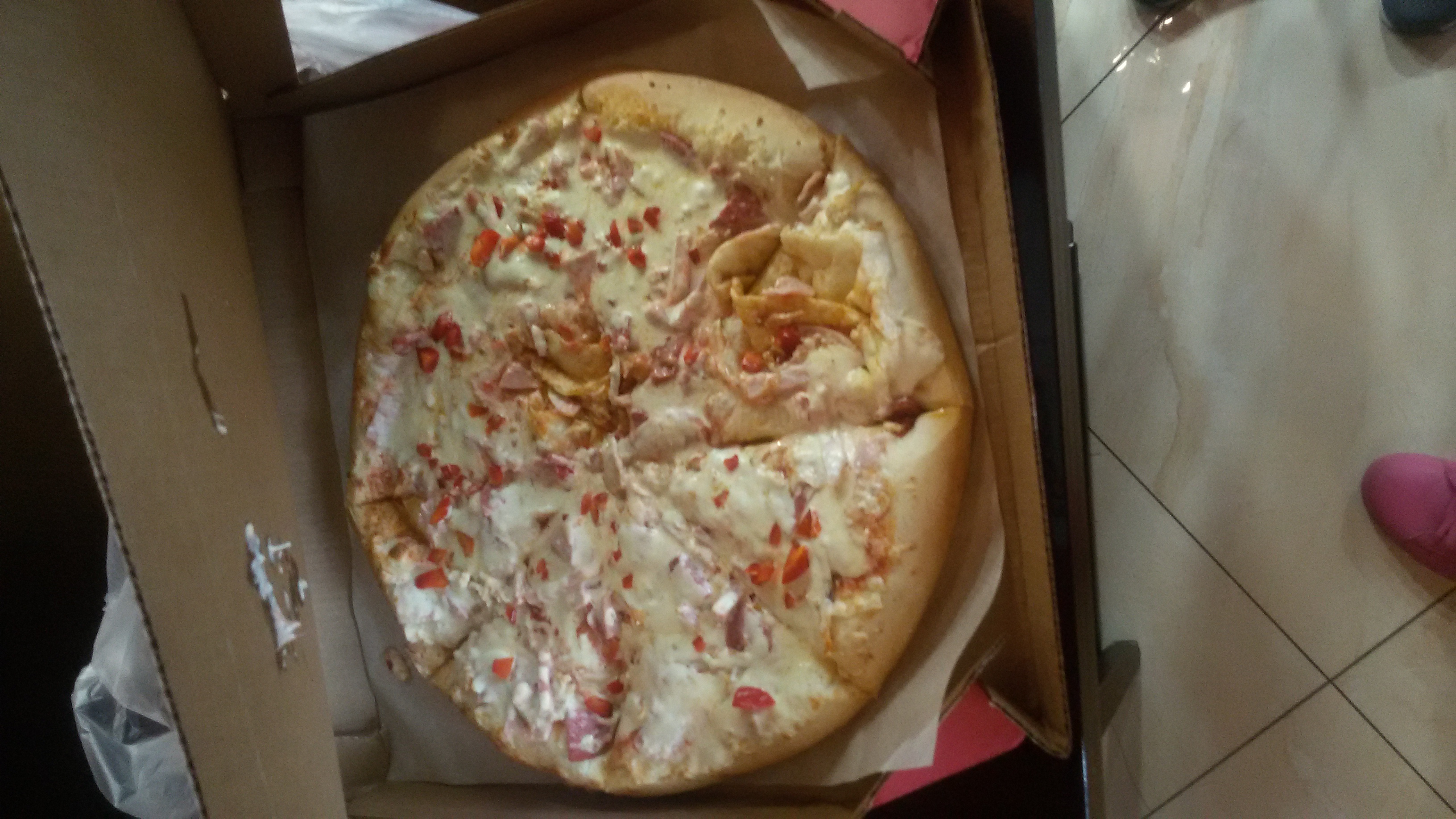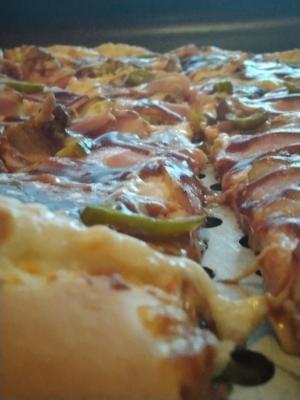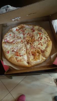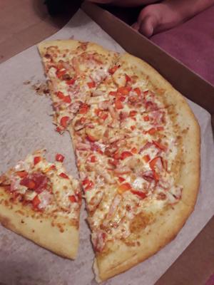 Пицца ужасная. Больше похоже на смаженку в школьной столовой. Толстое непропеченное тесто, майонез.. корочки по 1-2 см выкидываются, т.к. тесто просто невкусное. Сама по себе не сочная, сухая.
