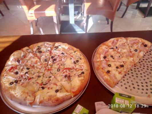 Персонал приветливый, пицца большая, начинки много, но...